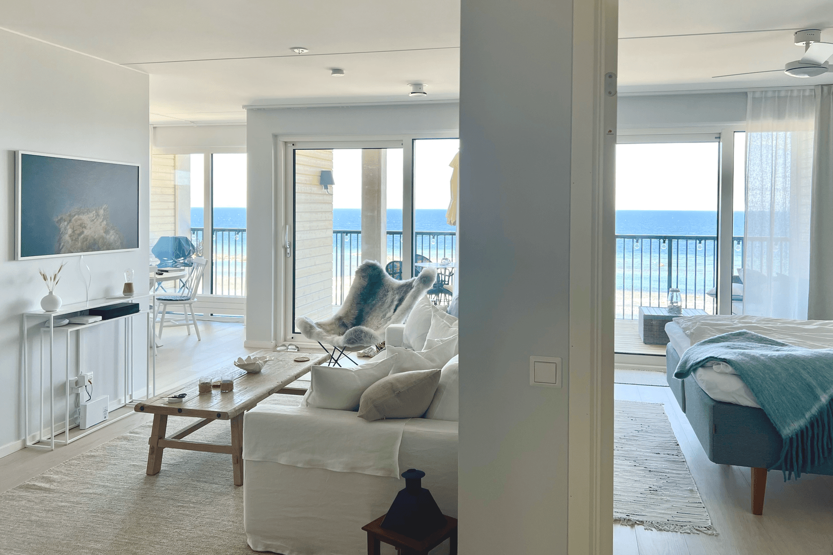 En modern och välbalanserad bostad med havet som granne, där varje detalj är vald med omsorg.
