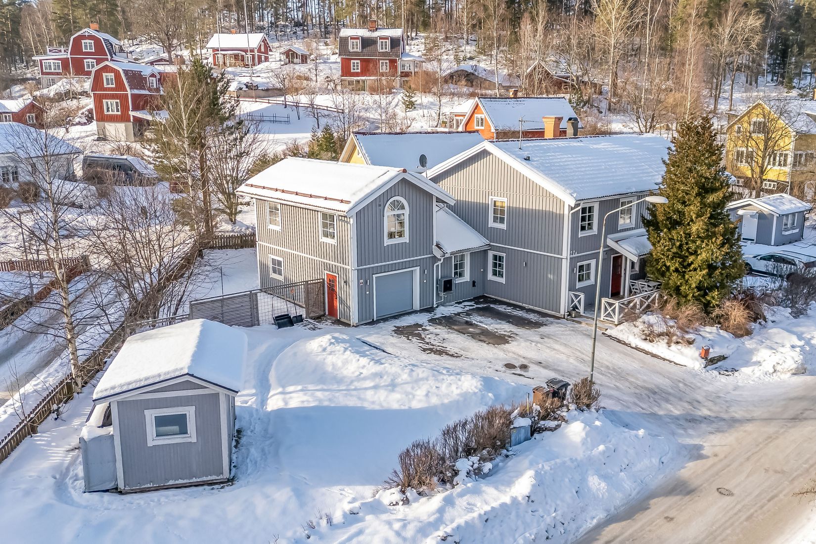 Här finns även gott om förvaring med flera förrådsutrymmen samt ett rymligt garage med plats för både bil och fritidsutrustning.
