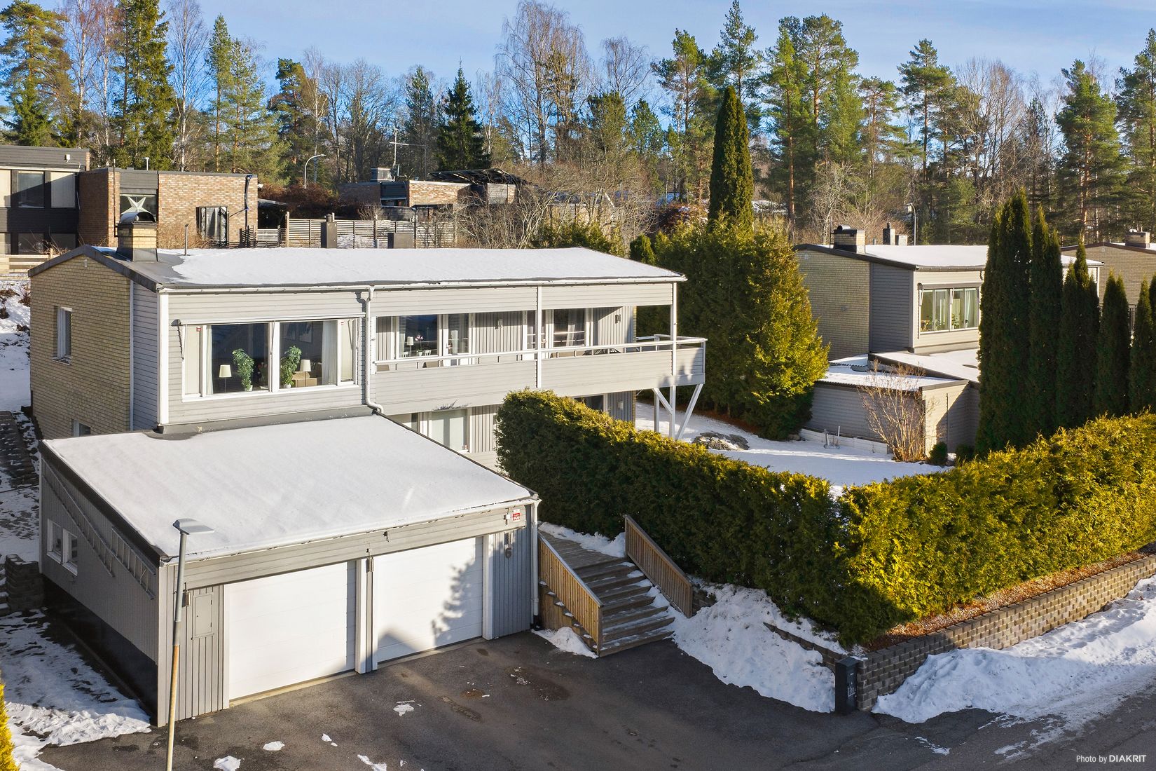 På entréplanet finns rymlig hall, sovrum med egen stor klädkammare, grovingång med ingång till garaget som är isolerat och med el-portar, renoverad tvättstuga, sovrum, helkaklad dusch/wc med bastu.