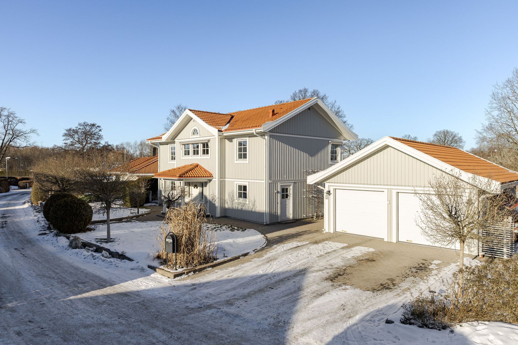 Bostaden rymmer fyra generöst tilltagna sovrum samt två badrum - ett med dusch och ett med badkar. Det finns också genomtänkt förvaring i form av garderober, klädkammare och dubbelgarage med stort förråd.