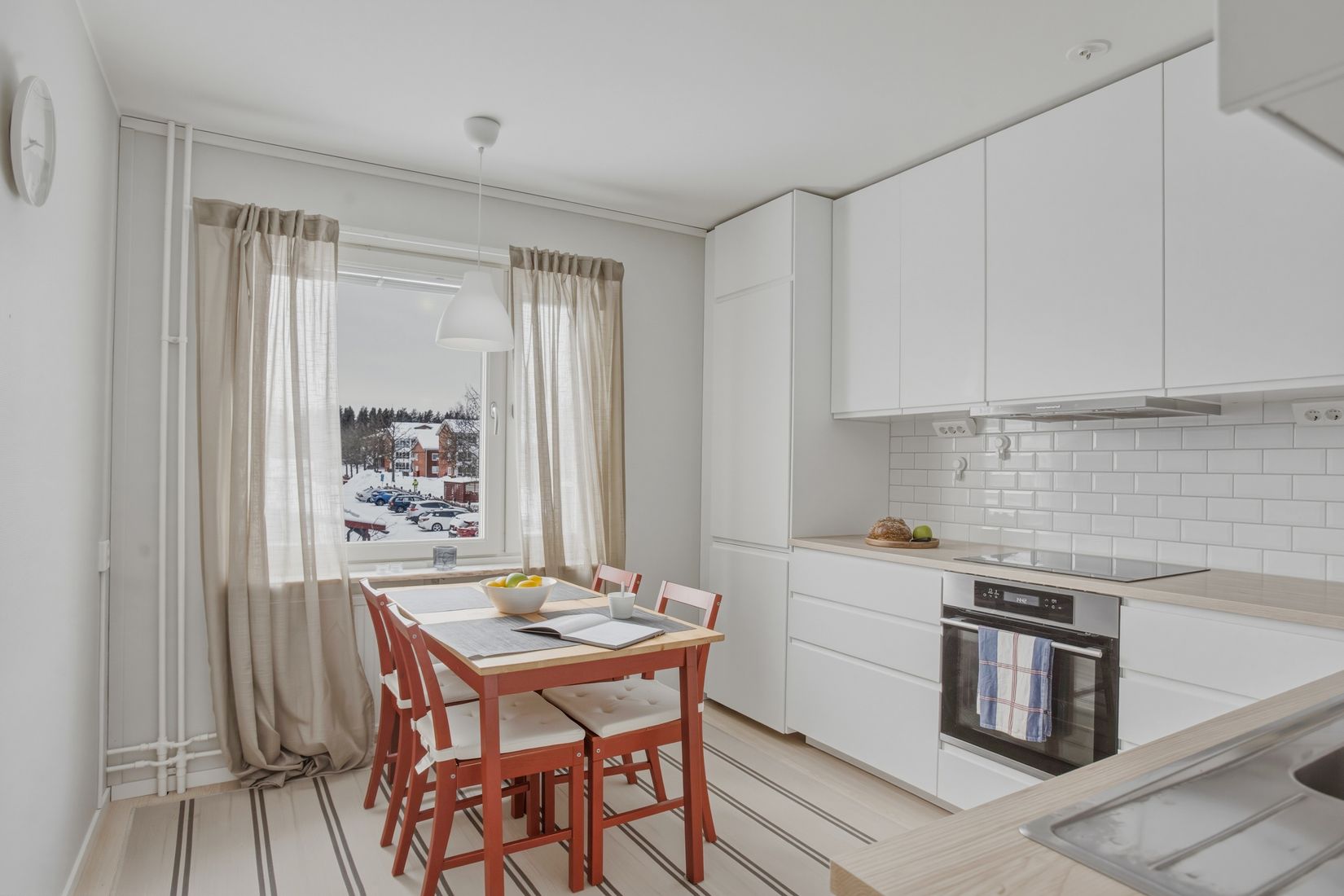 Genomgående smakfulla golv och ljusa väggar ger bostaden en modern och harmonisk känsla. Badrummet är utrustat med badkar – perfekt för avkopplande stunder.