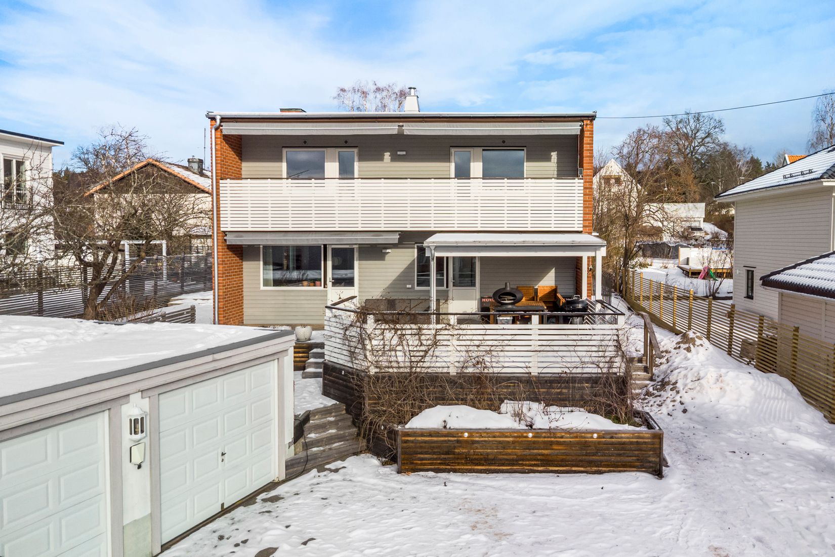 Från både kök och vardagsrum kliver ni rakt ut på den solsäkra, insynsskyddade altanen – en privat oas där sommaren verkligen får ta plats. Här finns gott om plats för loungemöbler och grillkvällar med goda vänner.