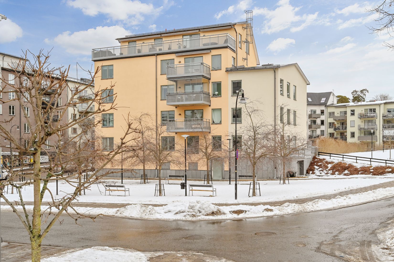 Fräscht Marbodalkök med exklusiva granitbänkskivor, stort, ljust vardagsrum och tre bra sovrum. Stort helkaklat badrum/wc med tvättmaskin och torktumlare samt separat wc. Genomgående fina parkettgolv.