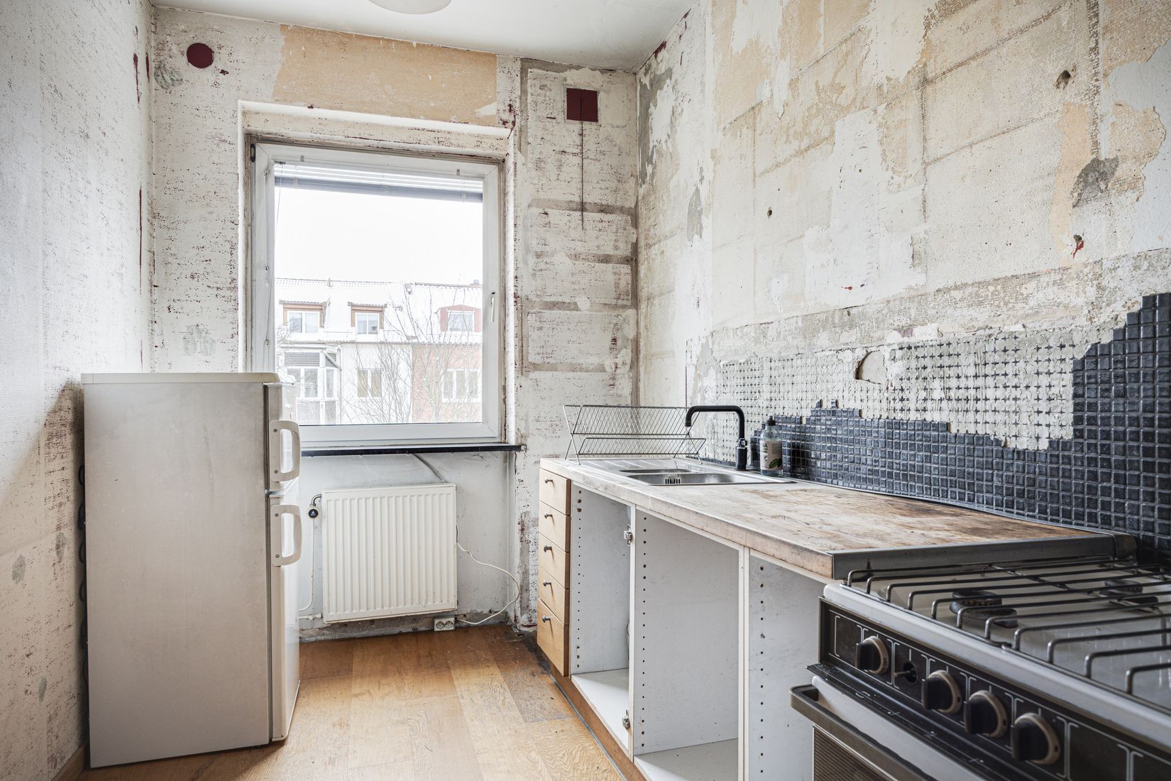 Kök- Fönster som ger ett fint ljusinsläpp. Köket är i behov av renovering, vilket ger nästa ägare en utmärkt möjlighet att skapa ett nytt och funktionellt kök helt efter egen smak och standard. Väggarna kan enkelt fräschas upp och anpassas efter egen stil och planlösningen ger goda förutsättningar för en effektiv arbetsyta.