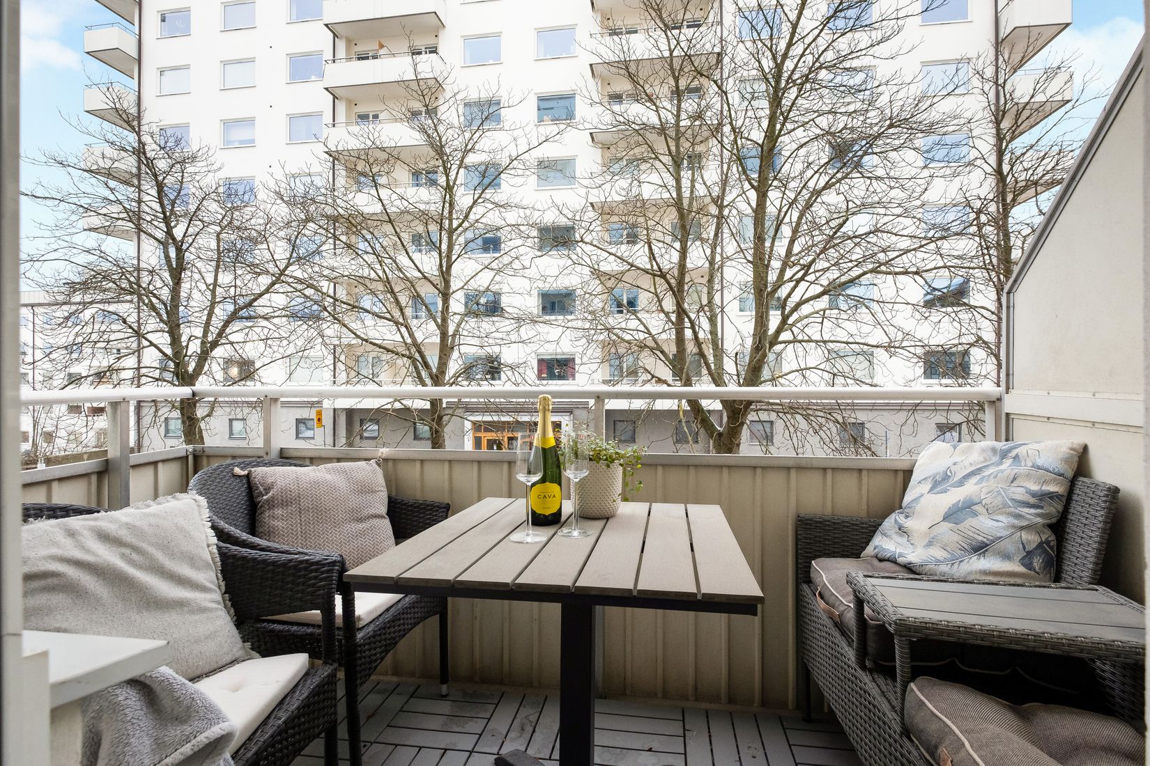 Vardagsrummet är generöst och socialt med gott om plats för både soffgrupp och matbord, perfekt för såväl vardag som umgänge. Sovrummet rymmer utan problem en dubbelsäng och erbjuder en rofylld atmosfär. Från sovrummet nås en mysig balkong med plats för utemöbler – en härlig förlängning av hemmet under årets varmare månader. Köket är väldisponerat och funktionellt utformat för dig som uppskattar matlagning.