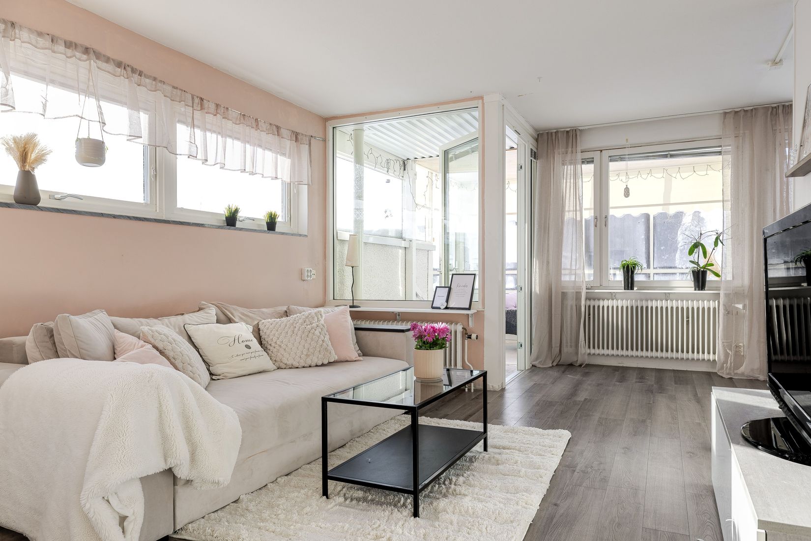 Välkommen till denna ljusa rymliga etta om hela 57 kvm inrymmande stort vardagsrum i vinkel med stor matplats mot det öppna köket. Fd förrådet har gjorts om till en mysig sovalkov. Helkaklat badrum med golvvärme. Inglasad altan med uteplats utanför med bästa kvällssolen. Lägenheten ligger i ett hörn och har stora fönsterpartier med ett fantastiskt ljusinsläpp. Närhet till Alnö centrum med all service samt skola och förskolor.