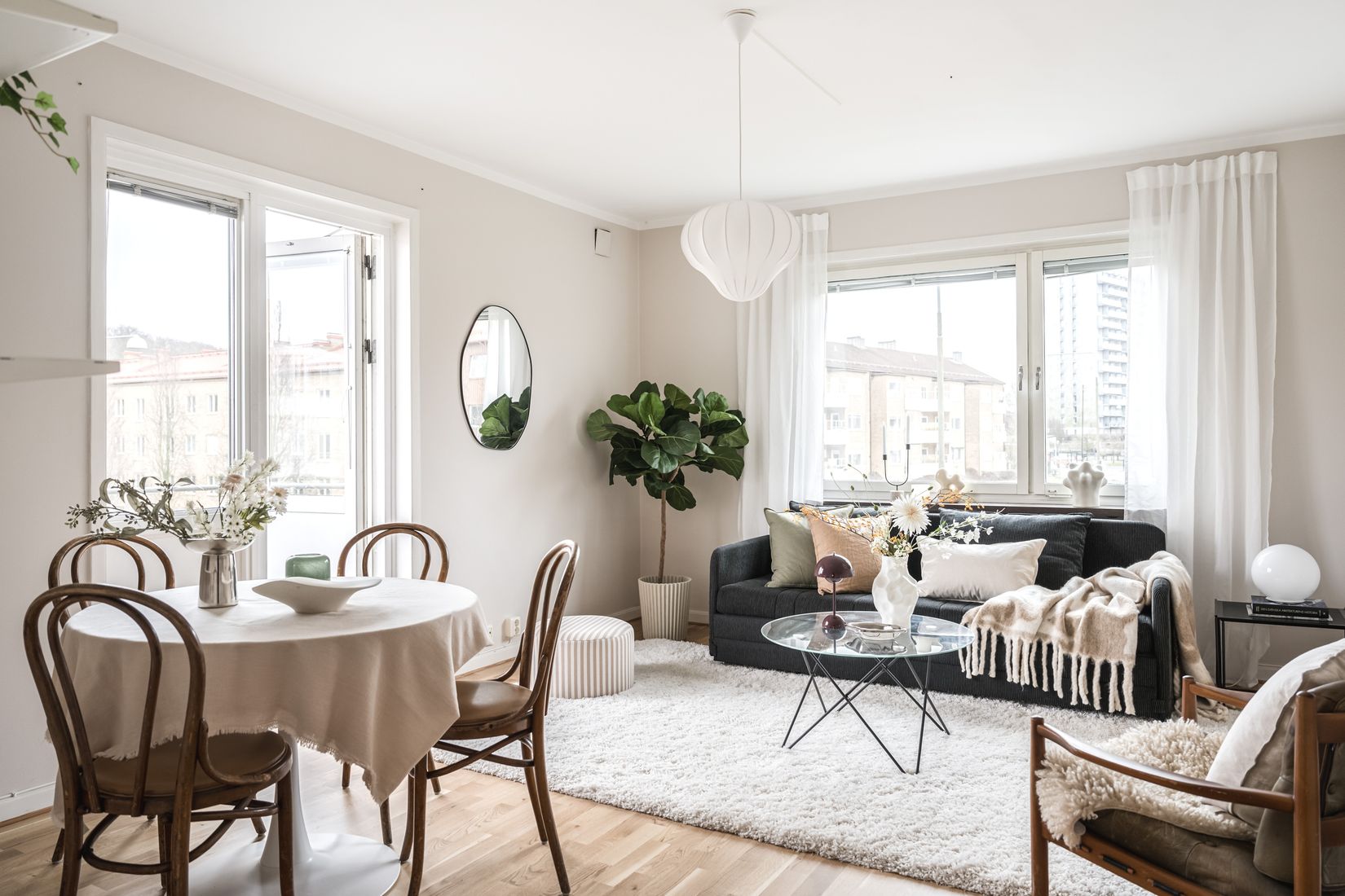 Lägenheten erbjuder renoverade ytskikt i ljusa, tidlösa toner som skapar en modern och enhetlig känsla genom hela bostaden. Planlösningen är genomtänkt med generösa sällskapsytor och ett fint ljusinsläpp från tre väderstreck som ger ett luftigt intryck. Vardagsrummet rymmer ordentlig soffgrupp och matplats och passar utmärkt för såväl vardag som sociala tillfällen. Här förlängs rummet ytterligare tack vare generös balkong med utsikt mot Pildammsparkens trädtoppar. Köket är funktionellt med goda arbetsytor och förvaringsmöjligheter. Sovrummet vetter rofyllt mot grönskade innergård med plats för större säng och garderober. Badrummet är fräscht i modernt utförande.