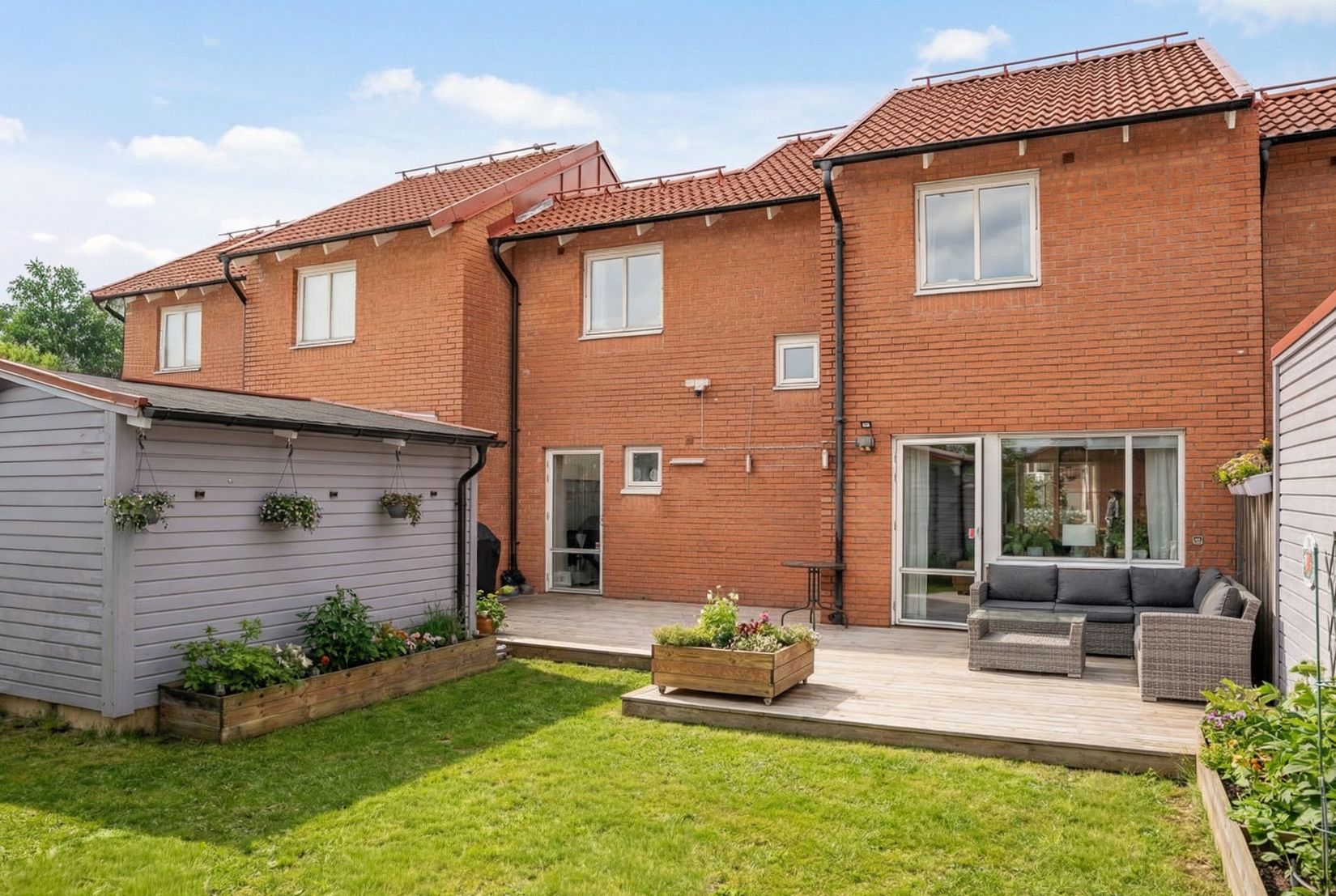 Vardagsrummet är stort på riktigt. Plats för ordentlig soffgrupp, matbord och sociala sammanhang utan att det känns trångt. Härifrån kliver du rakt ut i den privata trädgården i ett insynsskyddat södervästläge - bästa möjliga solläge. Sol större delen av dagen och magiska kvällar på det fina trädäcket. Middagar, grillkvällar, vin i kvällssolen - det här är en uteplats att älska. Dessutom finns ett praktiskt förråd i trädgården som löser förvaringen smidigt.