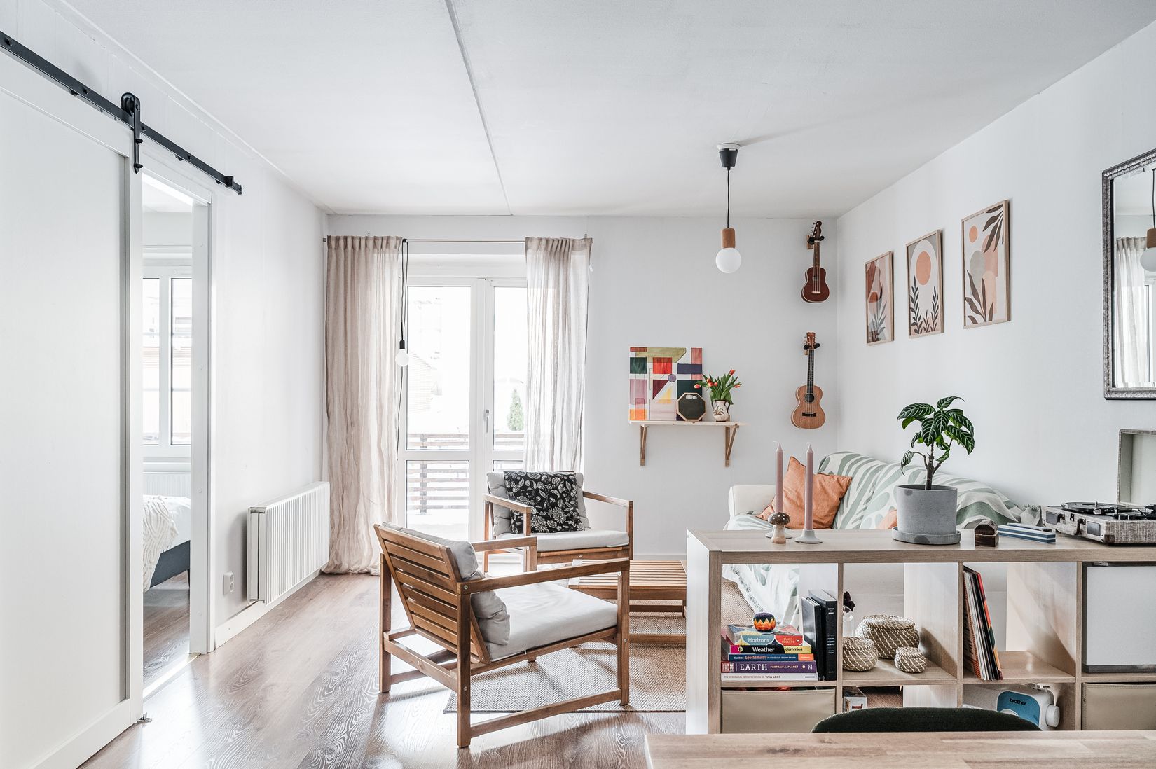 Du välkomnas in av hallen som erbjuder gott om förvaring i inbyggd garderob och härifrån möts du av bostadens allrum där köket ligger i en öppen planlösning mot vardagsrum. Slå upp dubbeldörrarna till uteplatsen och skapa ett extra rum sommartid - belägen i ett lugnt läge mot innergården där du kan njuta av solen hela dagen. Köket och vardagsrummet bjuder in socialt och inrymmer med enkelhet både soffgrupp samt matbord vilket ger plats för det stora sällskapet att umgås. Sovrum i bra storlek med förvaring i inbyggda garderober och fönster mot uteplatsen. Duschrum i anslutning till hallen med tvättmaskin - praktiskt och bekvämt!