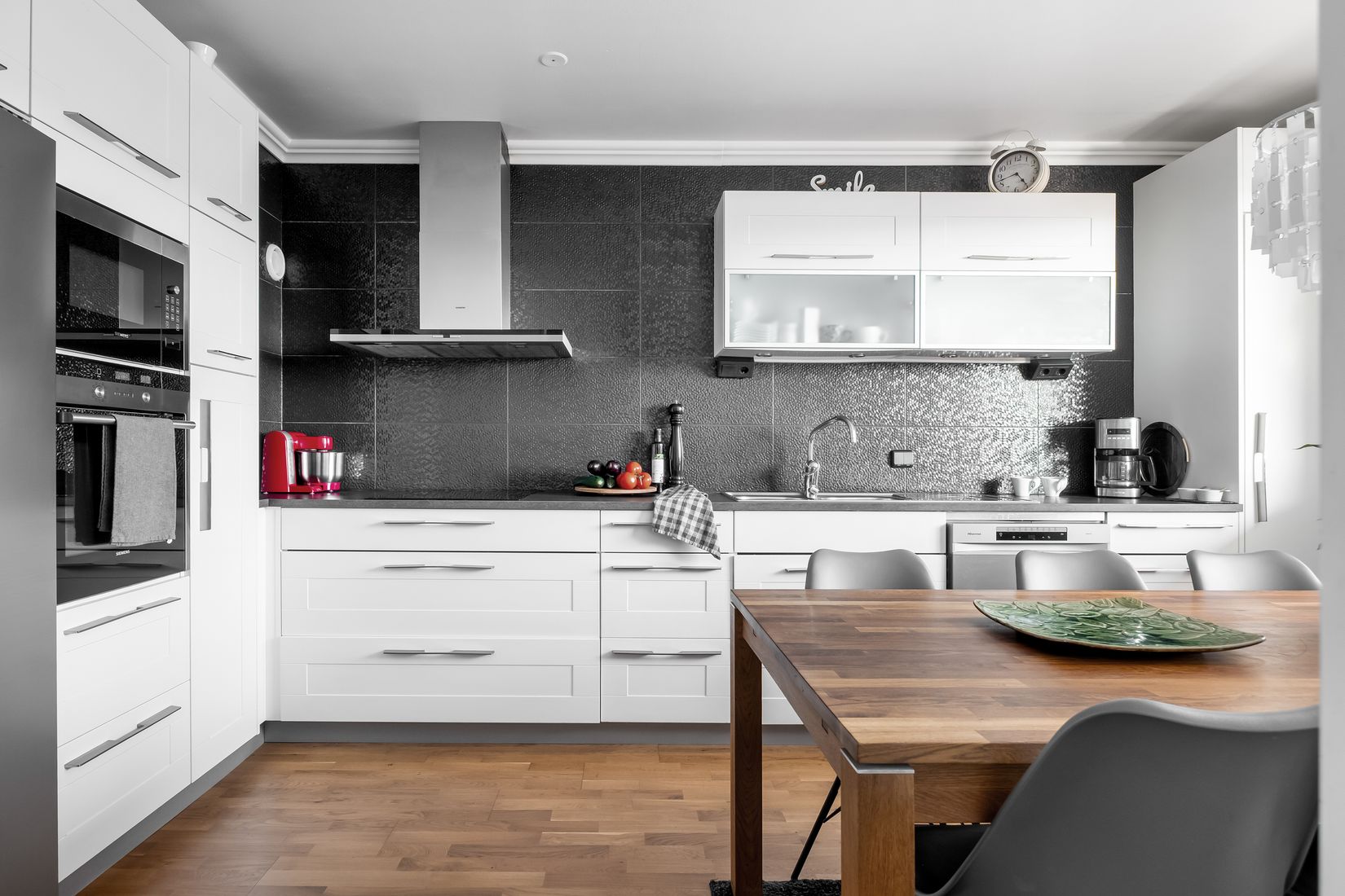 Det luftiga vardagsrummet skapar en naturlig samlingspunkt för familj och vänner. Lägenheten rymmer tre sovrum, varav ett med utgång till balkong i soligt västerläge. De två övriga sovrummen är något mindre och ligger mer avskilt från de sociala ytorna, vilket ger en lugn och privat atmosfär.
