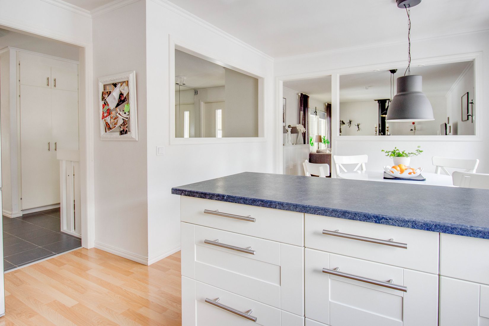 Redan i den välkomnande entrén möts ni av ett ljust och inbjudande intryck. Här finns avhängningsmöjligheter och gott om förvaring i garderober. Vidare öppnar bostaden upp sig mot de sociala ytorna där ett rymligt vardagsrum bjuder in till både avkoppling och umgänge, värmande kamin samt stort fönsterparti som ger ett fint ljusinsläpp. Köket är modernt och stilrent renoverat med generösa arbetsytor, god förvaring och plats för matbord intill fönster som släpper in rikligt med dagsljus. Här finns alla förutsättningar för både vardagsmiddagar och trevliga bjudningar. I den mer privata delen av entréplanet finns tre sovrum som erbjuder rofyllda miljöer för familjens medlemmar. Här finns även en gäst-WC samt en helkaklad WC/Dusch. En möblerbar hall knyter samman rummen och passar utmärkt som TV-hörna eller läsplats. På nedre plan väntar en stor och inbjudande gillestuga - perfekt som allrum, hobbyrum eller extra sällskapsyta. Här finns även ytterligare två rum som med fördel kan användas som sovrum, gästrum eller hemmakontor. Planet erbjuder dessutom tvättstuga, klädkammare och förråd - praktiska utrymmen som förenklar vardagen. Huset är bekvämt uppvärmt med fjärrvärme och solcellerna bidrar till en mer ekonomisk energiförbrukning.