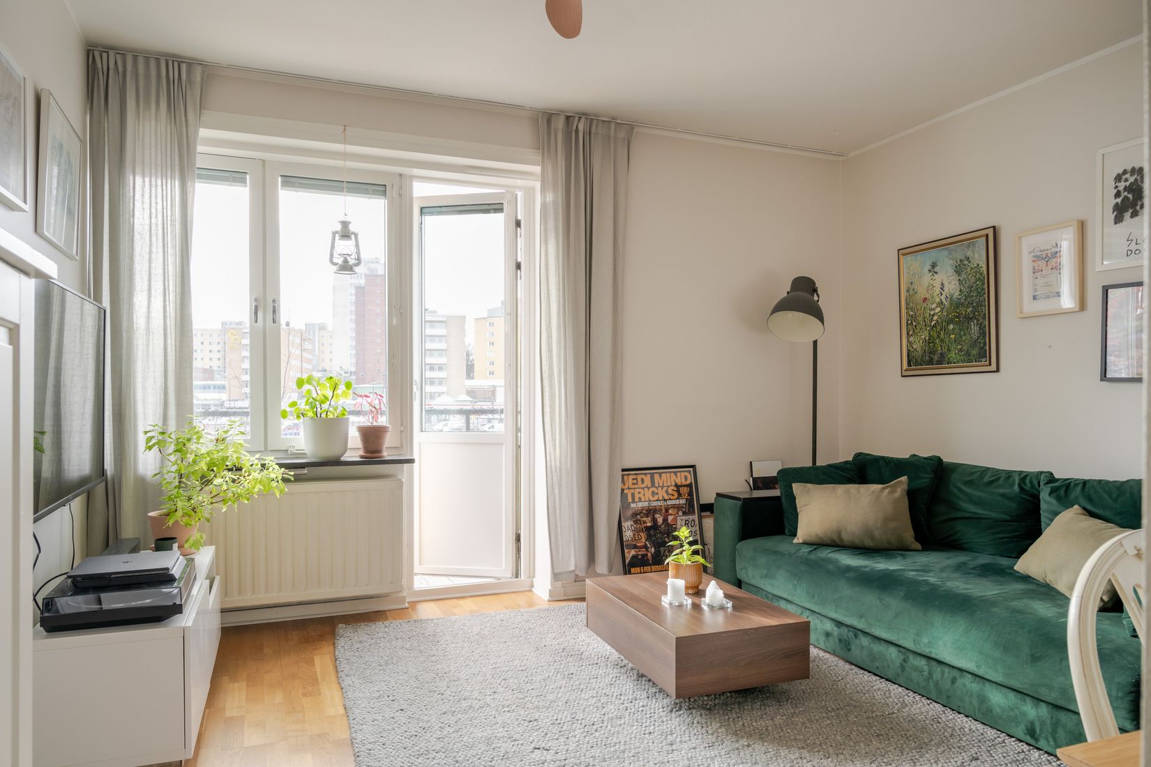 Här erbjuds ett trivsamt och välplanerat boende med en social och genomtänkt planlösning där kök och vardagsrum samspelar i en öppen och luftig miljö. Det generösa ljusinsläppet skapar en härlig känsla av rymd och ger bostaden en inbjudande atmosfär. Från vardagsrummet nås balkongen, som under årets varmare månader blir en naturlig och uppskattad förlängning av hemmet.