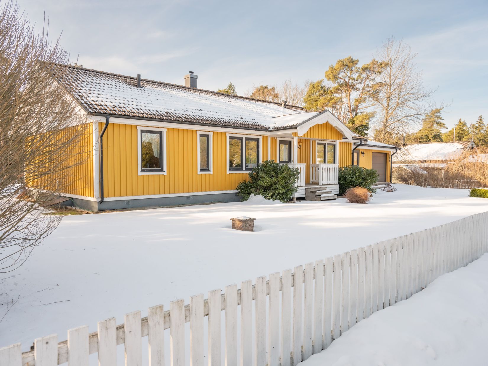 Välkommen till detta trivsamma enplanshus beläget längst in på en lugn återvändsgata – perfekt för dig som söker ett tryggt och avskilt boende. Bostadens 117 kvm erbjuder en genomtänkt planlösning med tre sovrum, badrum med badkar och generösa sällskapsytor. Det ljusa vardagsrummet utgör hemmets naturliga samlingspunkt och värms upp av en stämningsfull kamin som ger både värme och trivsel under årets kallare månader. Intill finns ett allrum som passar utmärkt som TV-rum, lekhörna eller hemmakontor. Via groventrén och tvättstugan når man det vidbyggda garaget. På tomten finns dessutom ett extra fristående garage samt förråd.
