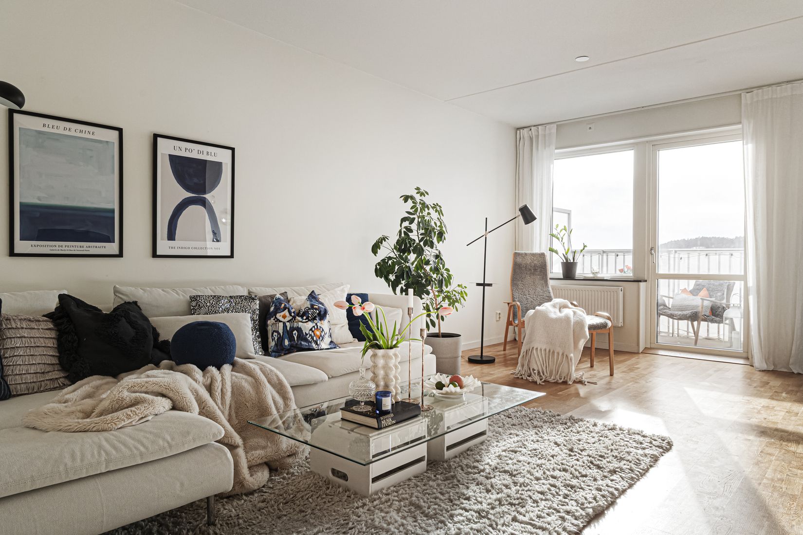 Välkommen till en stilfull och inbjudande genomgångslägenhet om ca 75 kvm – högt upp på våning 3 med ett fantastiskt ljusinsläpp och två soliga balkonger i olika väderstreck. Här kan du njuta av morgonkaffet i den ena och avsluta dagen med kvällssol i den andra, ett hem som följer solen från morgon till kväll.