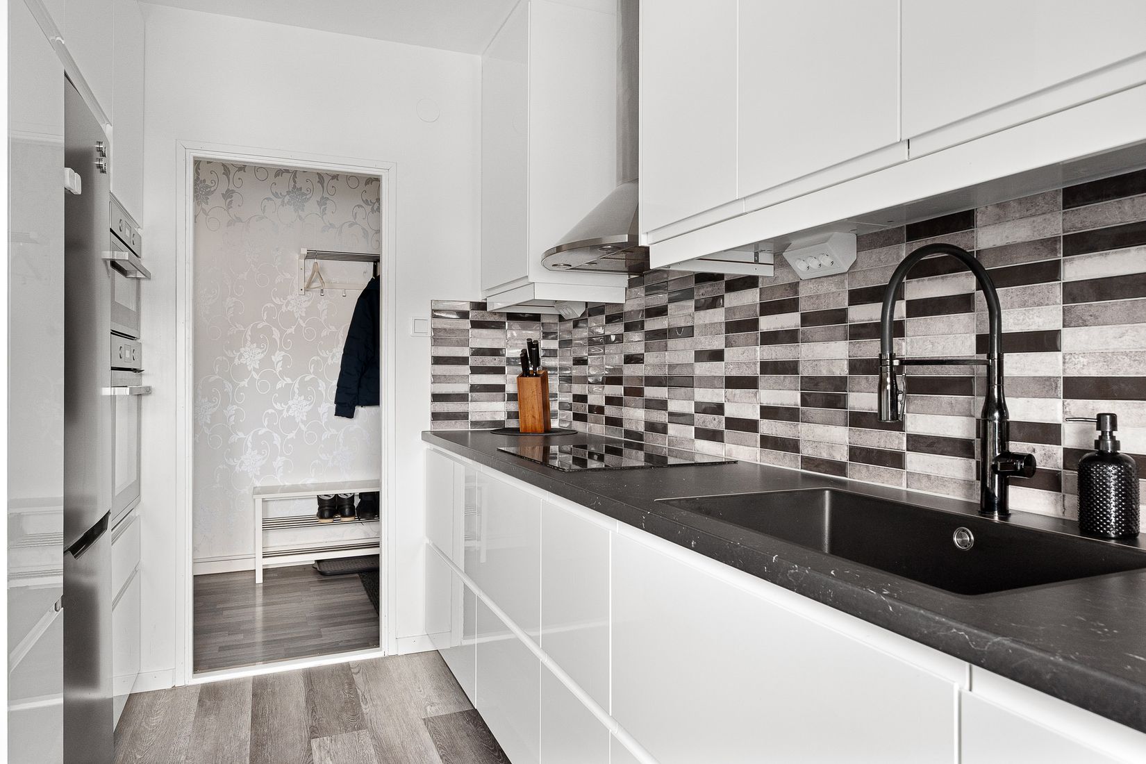 Det smakfullt renoverade köket är hemmets naturliga hjärta. Här kombineras modern design med funktionalitet i perfekt balans. Vid matplatsen intill fönstret skapas en självklar samlingspunkt för såväl vardagsmiddagar som långa, levande kvällar med vänner.
