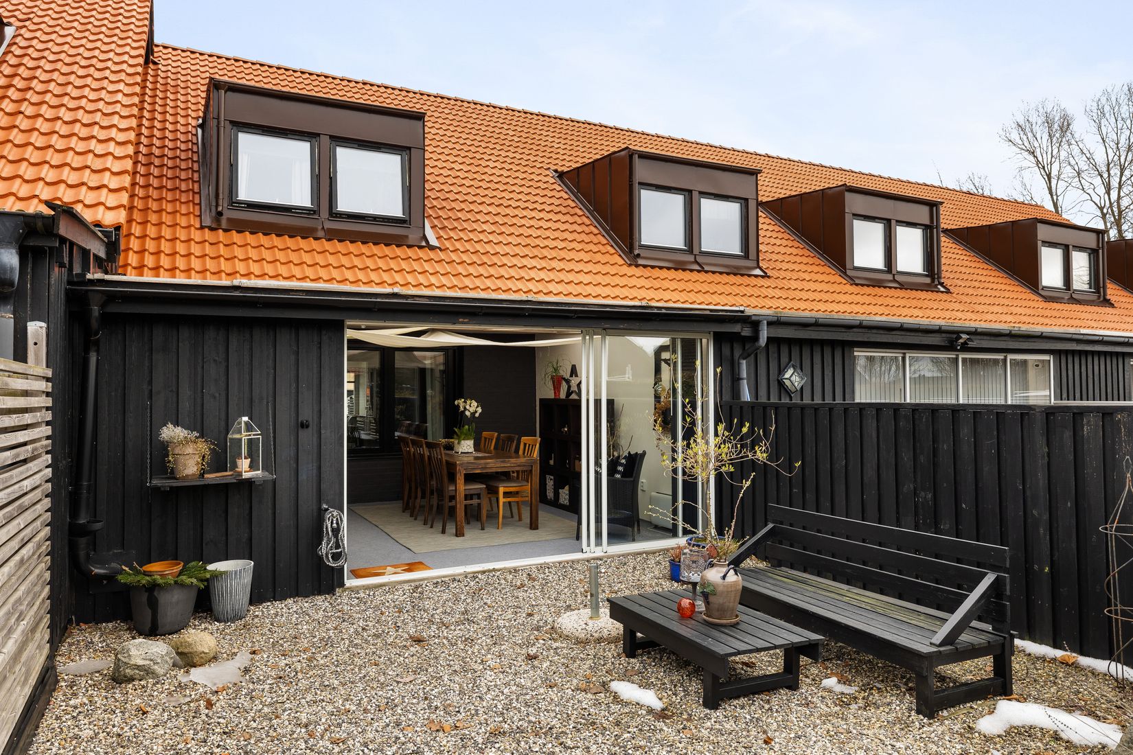 På framsidan möts vi av en charmig, stensatt uteplats där morgonsolen bjuder in till en lugn start på dagen. På baksidan väntar ett rymligt inglasat uterum i västerläge, en naturlig förlängning av hemmet där middagar, avkoppling och umgänge kan njutas stora delar av året.
