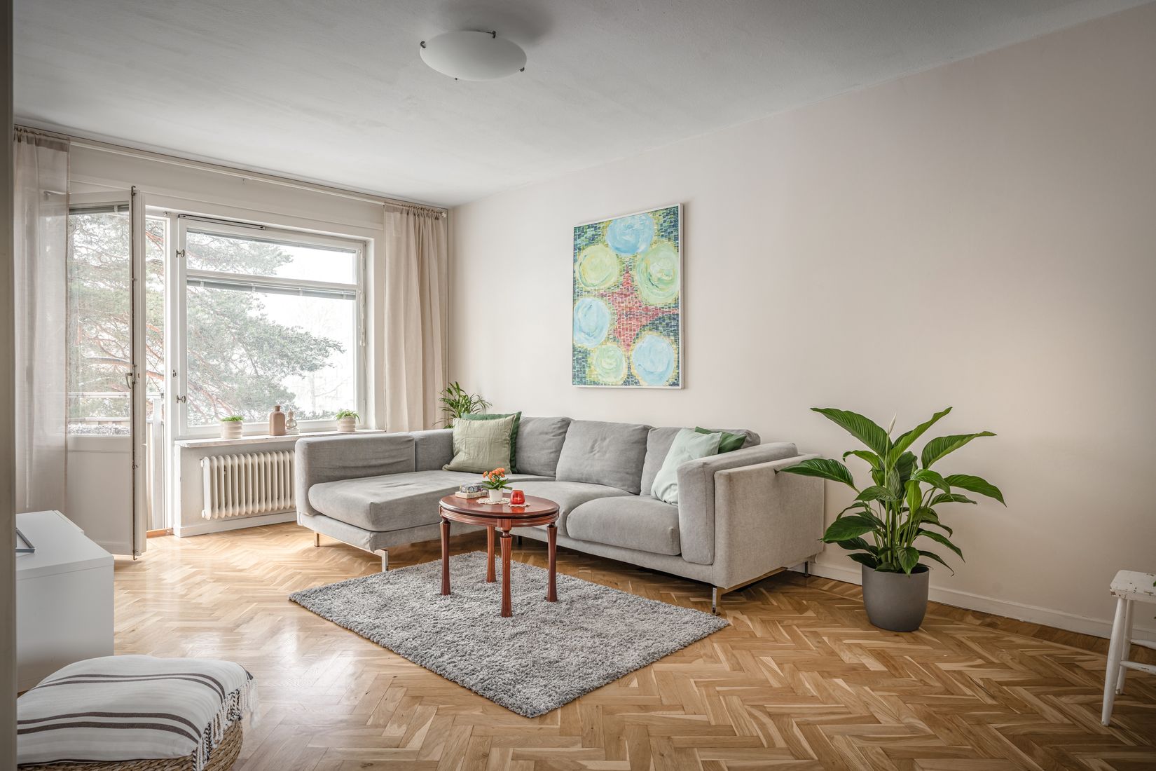 Bostaden ligger i ett lugnt läge med härlig utsikt över föreningens grönskande innergård och har generöst ljusinsläpp. Bostaden har omsorgsfullt renoverats med smakfulla materialval. Bostaden har en optimal planlösning med ett ljust vardagsrum med utgång till balkong, rymligt kök med gott om plats för ett större matbord, tre bra sovrum samt ett badrum och en gäst wc. Vad mer kan man begära?