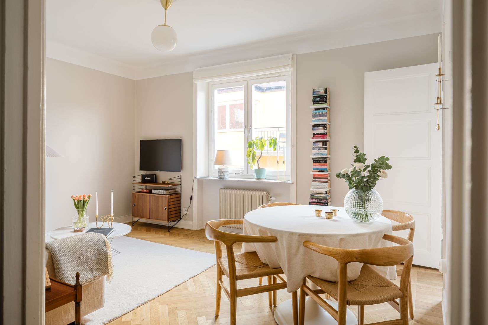 Välkommen till en smakfullt uppdaterad och ytterst välplanerad tvårummare på en av Södermalms mest attraktiva adresser – mitt på idylliska Mariaberget. Här bor du i en vacker fastighet från 1920-talet där klassiska detaljer möter moderna förbättringar i en harmonisk helhet. Bostaden har genom åren renoverats med varsam hand och stor omsorg om både kvalitet och estetik. Föreningen är stabil med god ekonomi och låg avgift, vilket skapar en trygg och långsiktig boendemiljö.