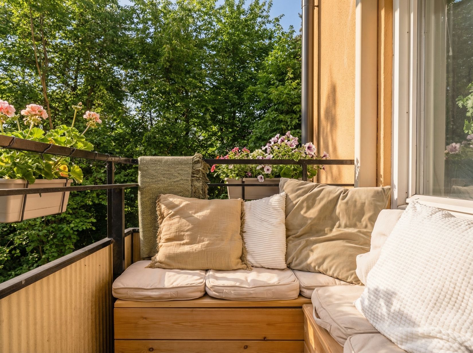 De två sovrummen är rofyllda och erbjuder gott om plats för både säng och förvaring – perfekta som sovrum, barnrum eller hemmakontor. Vardagsrummet är ljust och inbjudande med utgång till bostadens balkong i söderläge. Här kan du njuta av soliga dagar och varma kvällar.