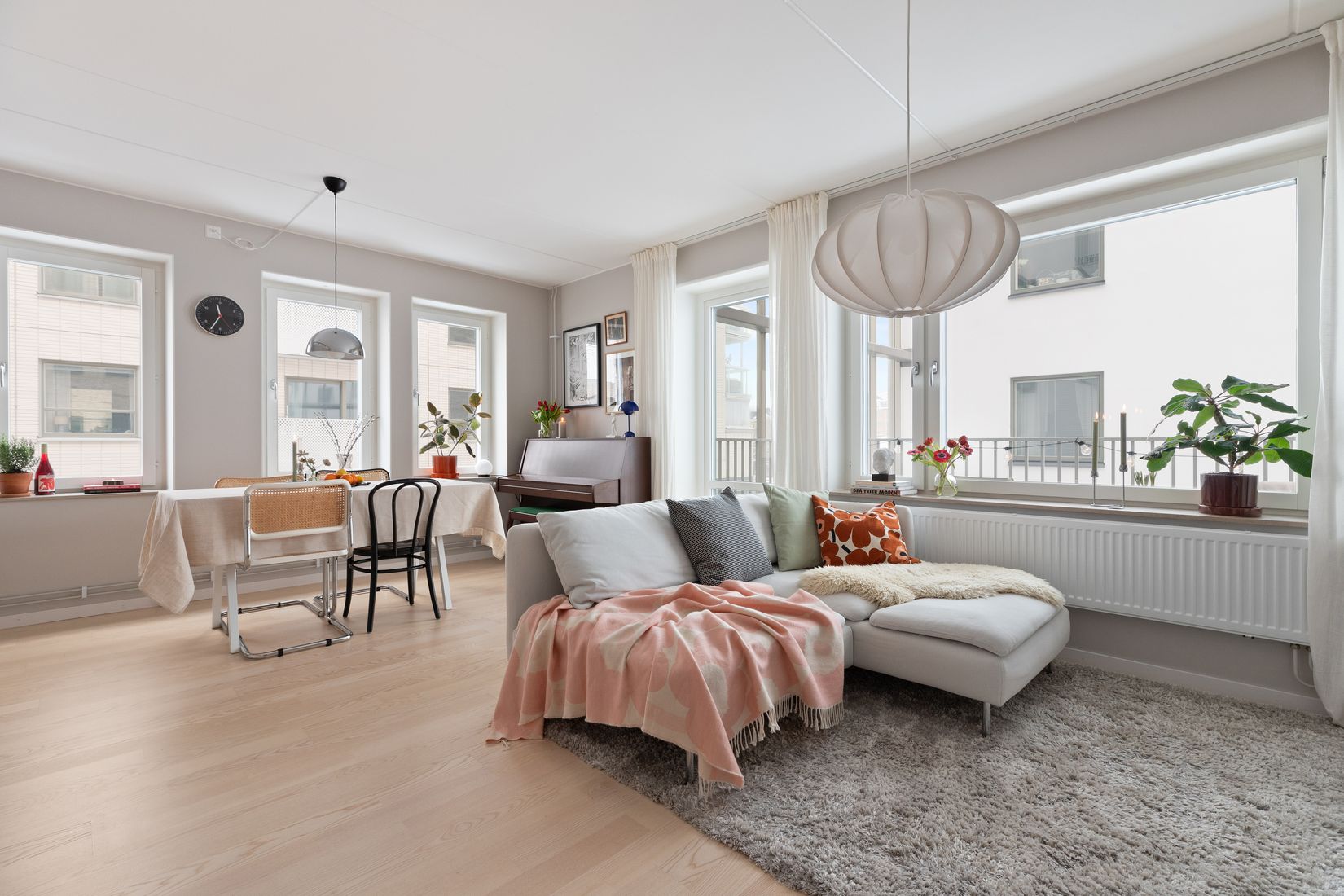 Här möts du av en bostad med modern komfort, smart förvaring och en härligt planlösning. Genom hallen öppnar sig en rymlig och öppen känsla mellan kök och vardagsrum, perfekt för flexibla möbleringsmöjligheter. Från vardagsrummet når du den generösa balkongen med trevlig utsikt och gott om utrymme. Intill hallen finns ett stort sovrum, ett stilrent helkaklat badrum och gott om förvaringsutrymme bakom skjutdörrar. Lägenheten har en ljus färgpalett som skapar en hemtrevlig atmosfär. Köket, precis som resten av bostaden, präglas av smakfulla och väl genomtänkta materialval, med vitvaror från Siemens och generösa arbetsytor.
