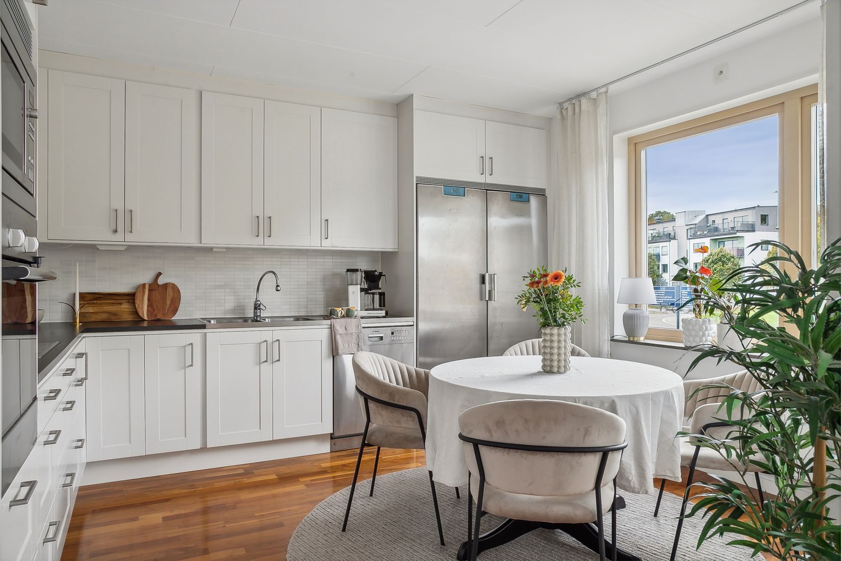 Välkommen till denna välplanerade och moderna trea där parkering ingår i avgiften! Bostaden erbjuder en delvis öppen planlösning mellan kök och vardagsrum och en härlig balkong. Hög standard samt fina färg- och materialval och stilrent kök! Det helkaklade och rymliga badrummet erbjuder bl.a. tvättavdelning som förenklar vardagen. Vidare erbjuds två stora sovrum, ett rymligt vardagsrum och en klädkammare. Underbart läge och familjevänligt område med naturen runt hörnet och ca 15 minuter in till stan kollektivt. Här bor ni i ett lugnt läge med både villor och lägenheter som närmsta grannar samt rådjur och harar som bor i skogen bakom huset. Till bostaden tillhör en parkeringsplats med laddstolpe samt ett förråd på första våningen.