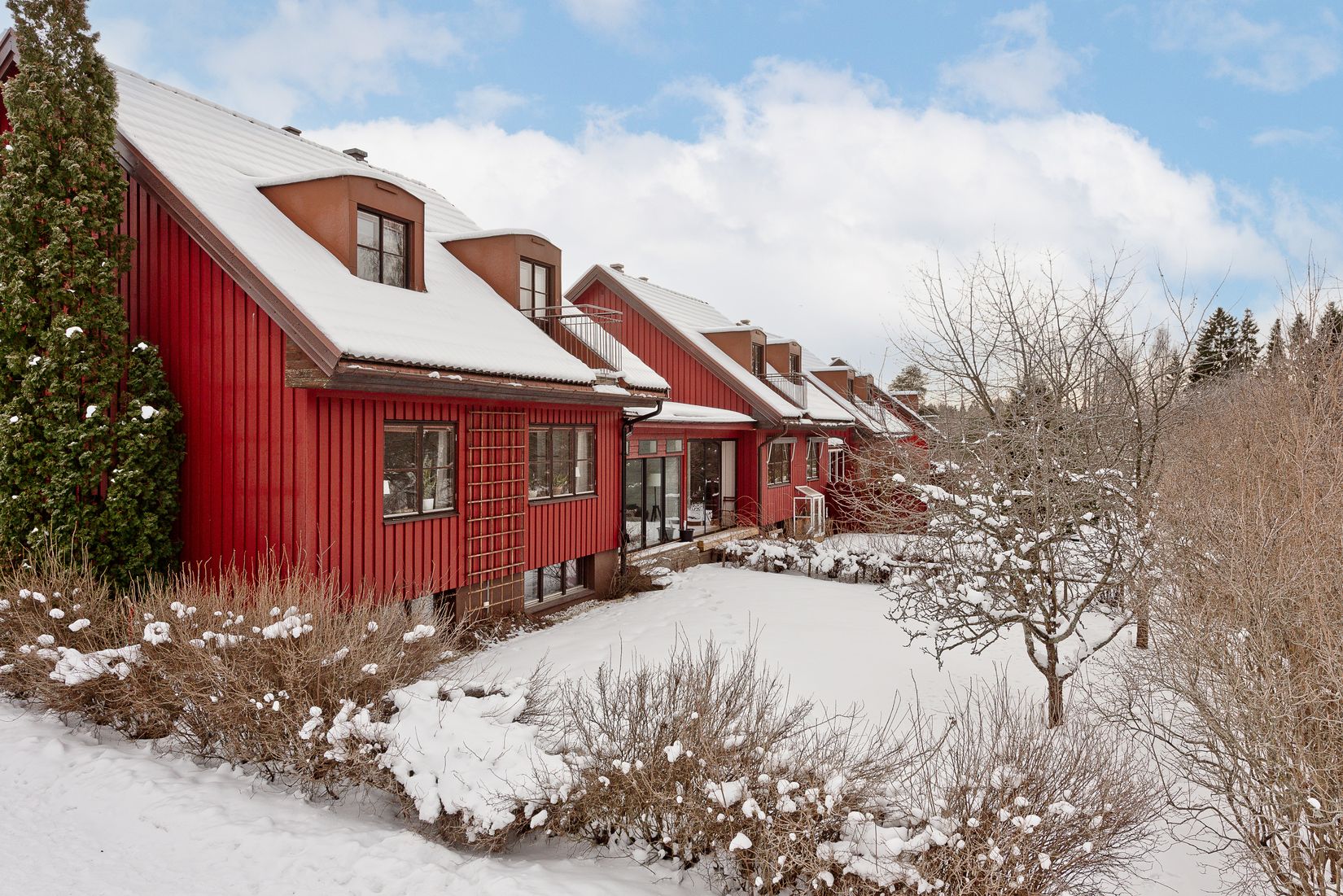 Nu har ni möjligheten att flytta till ett trivsamt kedjehus med ett av dom bästa lägena i området. Ni möts av en ljus hall med öppen planlösning mellan kök, vardagsrum och matrum. På övervåningen ligger tre sovrum, alla med takkupa och från ett av sovrummen finns en balkong. Källaren har en stor tvättstuga med dusch, stort förråd samt den gamla gillestugan är indelad i två rum, lämpliga som spelrum eller jobba hemma kontor. Eget varmgarage i länga med EL-Billaddare och flera parkeringar för gäster.