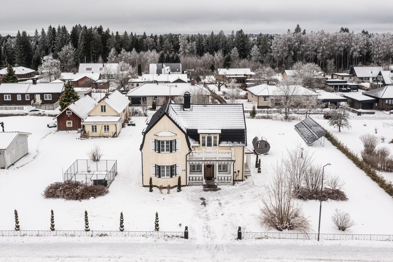 Tomten är en trivsam och privat oas med en nybyggd veranda om hela 70 kvm som skapar generösa ytor för umgänge och avkoppling. Här finns jacuzzi och vedeldad bastutunna som sätter guldkant på vardagen. För den som har hund finns en hundgård med isolerad koja. Fastigheten erbjuder även dubbelgarage samt snickarbod, robotgräsklippare och en uppvuxen thuja-häck om cirka 50 meter som ger ett insynsskyddat och ombonat intryck.