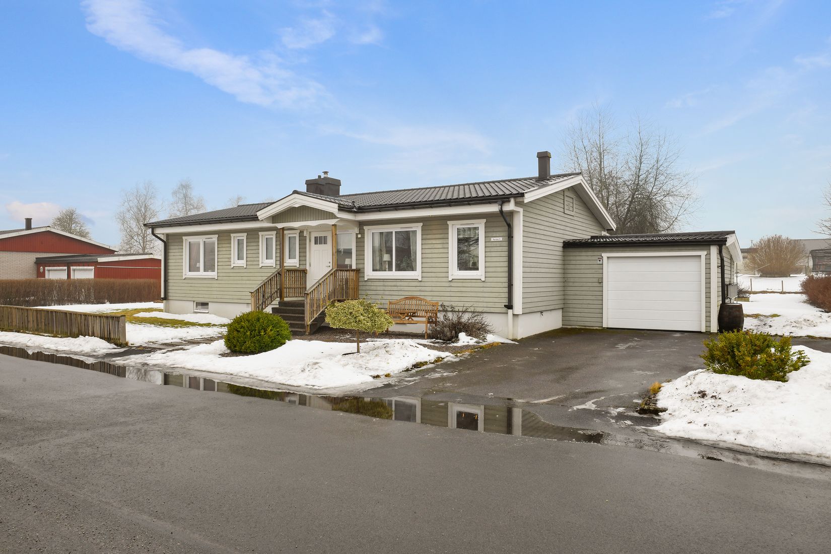 Ett trevligt enplanshus med källare i ett lugnt område strax utanför Falköping. Huset är byggt 1973 och har en boyta om 103 + 125 kvm. På entréplan möts du av en hall med klinkergolv, ett badrum, en gästtoa, tre sovrum, ett kök renoverat 2015 samt ett vardagsrum i öppen planlösning med utgång till ett inglasat uterum och vidare till altanen.