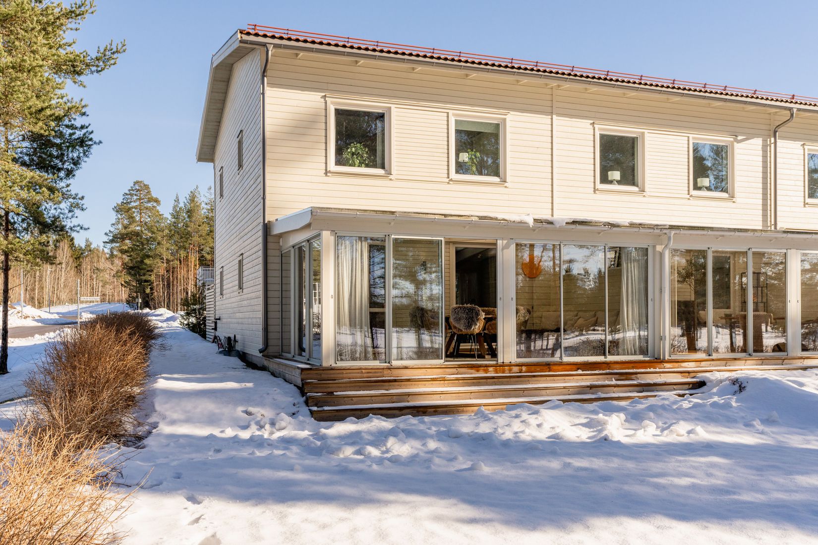Utvändigt erbjuds en ovanligt generös uppfart med plats för upp till tre bilar, en tydlig fördel i området. Uppfarten är asfalterad och utrustad med elbilsladdare. Den inglasade altanen och uppförda skärmväggar förstärker den privata känslan och gör uteplatsen trivsam under stora delar av året.