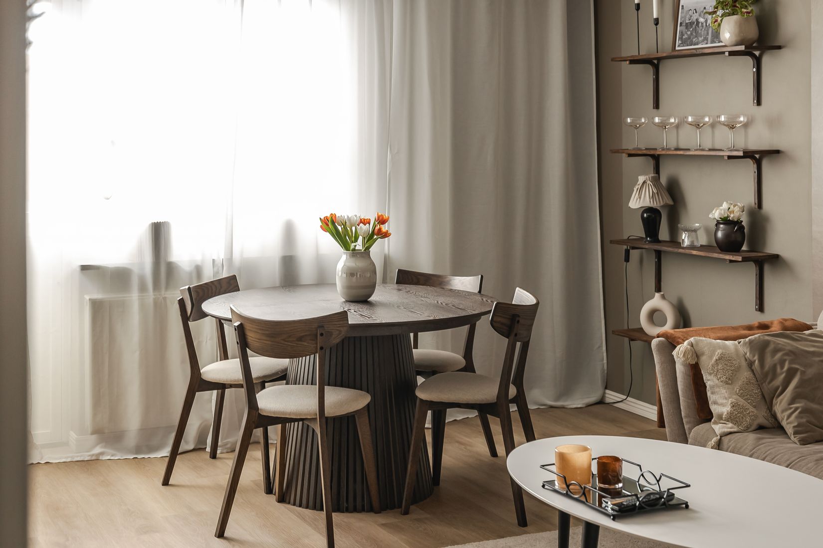 Genom hela bostaden löper en harmonisk färgsättning som skapar ett lugnt och enhetligt intryck. Det märks att renoveringen är gjord med eftertanke, det är bara att flytta in.