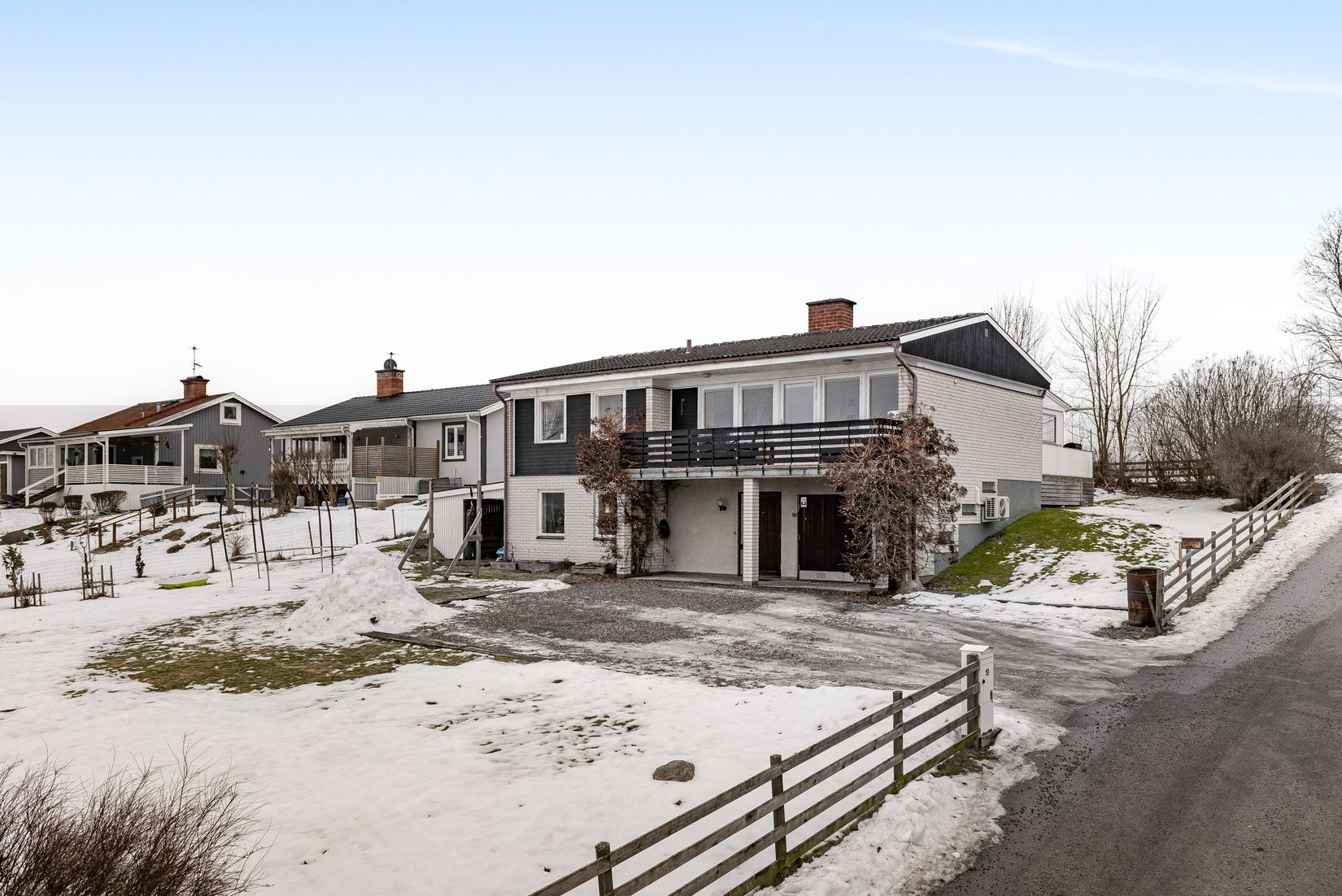 Entréplanet erbjuder ytterligare möjligheter med upp till två sovrum, vilket gör bostaden mycket flexibel efter behov. Här finns även en praktisk tvättstuga med klinkergolv, en toalett, klädkammare samt pannrum med fjärrvärmeanläggning. I direkt anslutning ligger garaget som är utrustat med golvbrunn, indraget vatten och el – en stor fördel för både vardag och hobby.