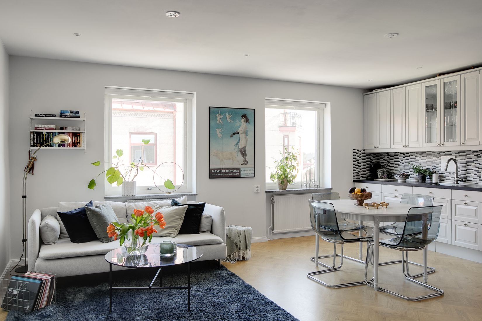 Bostaden är en smakfullt ombyggd tvåa där säljaren har öppnat upp mellan kök och vardagsrum för att skapa en social och inbjudande planlösning. De öppna ytorna ger ett fantastiskt ljusinsläpp och en naturlig samlingspunkt för såväl vardag som fest. Köket och vardagsrummet samspelar på ett sätt som gör hemmet både luftigt och lättmöblerat, perfekt för middagar med vänner eller lugna kvällar i soffan. Det genomgående fiskbensgolvet löper elegant genom bostaden och binder samman rummen på ett stilfullt sätt samtidigt som det förstärker den tidlösa känslan.