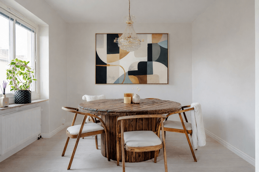 Bostaden har en tilltalande planlösning med genomgående enhetligt golv och stilrena färgval som skapar ett harmoniskt intryck. Vardagsrummet är trivsamt och rymligt, med en smakfull akustikpanel som ger rummet karaktär. I vinkel ligger ytterligare ett rum med utgång till balkong, vilket ger flexibla möbleringsmöjligheter och plats för både soffa och matsalsbord.
