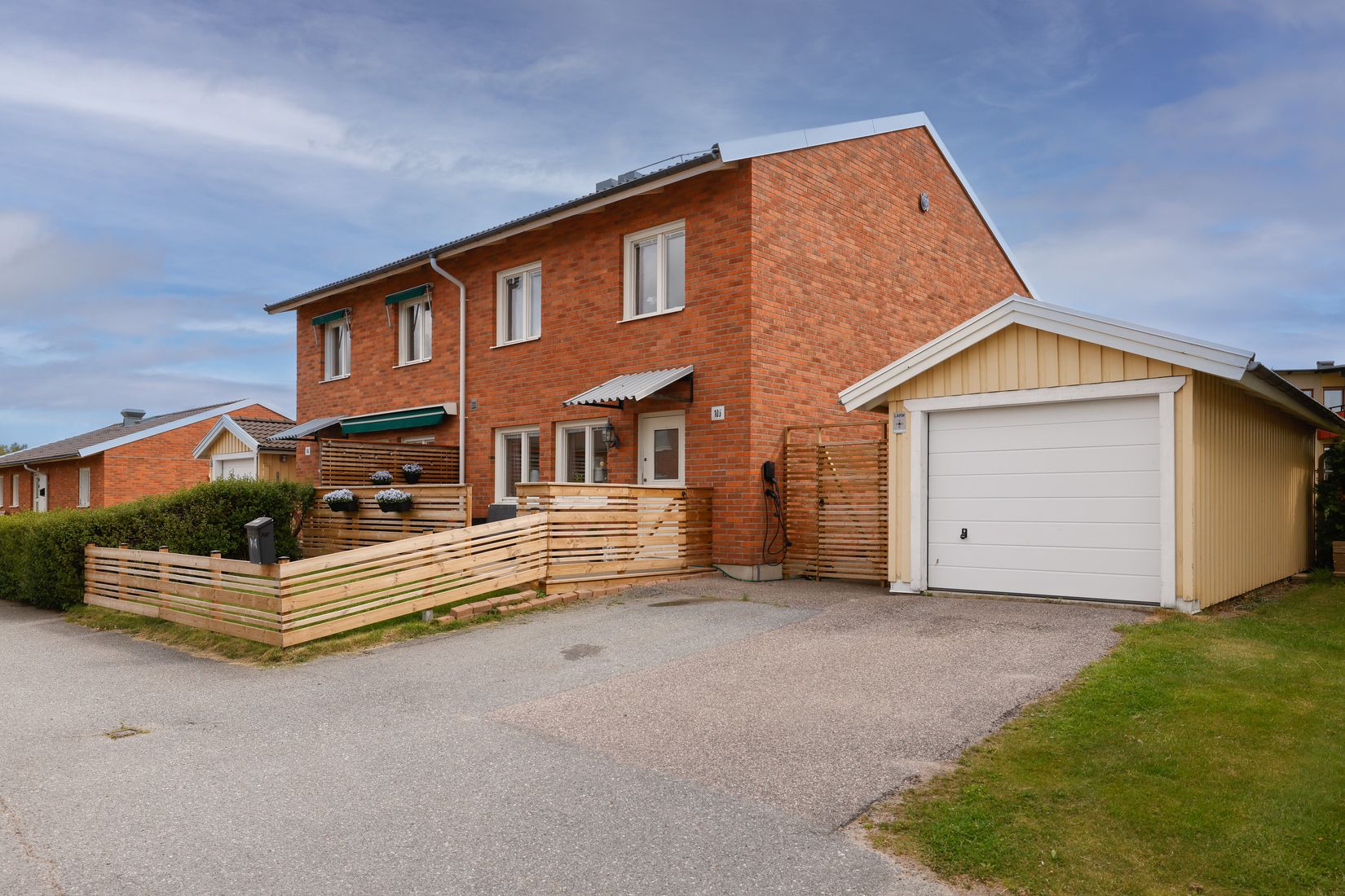 Nu har du chansen att förvärva detta charmiga bostadsrättsparhus med det lilla extra! Här bor du bekvämt i ett hemtrevligt och välplanerat boende med en egen uteplats, garage med plats för en bil samt 2 st parkeringar/uppställningsplatser utanför – allt i lugna och barnvänliga Kumlaby.