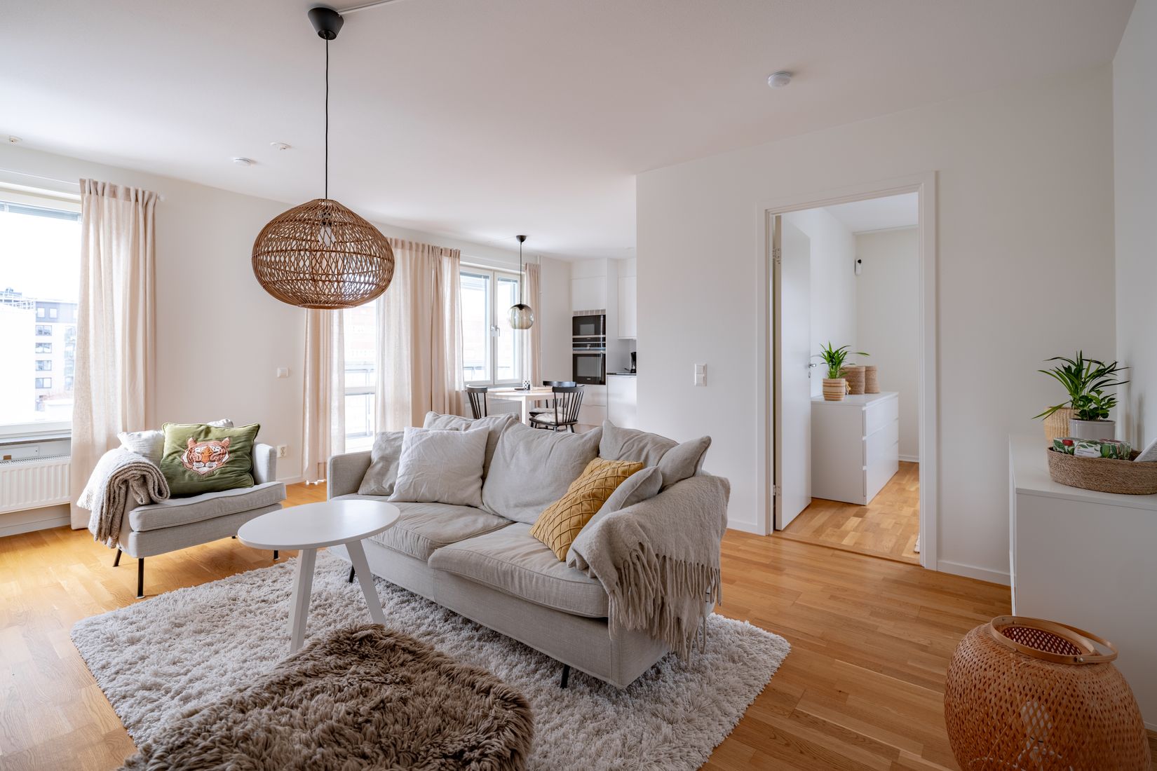 Trivsam bostad som erbjuder generösa och sociala öppna ytor med härligt kök och vardagsrum i anslutning med varandra. De stora fönsterpartierna och den generösa takhöjden ger ett fantastiskt ljusinsläpp och en härlig känsla av rymd. Den inglasade balkongen i sydväst-läge blir ett extra rum som förlänger sommaren och bjuder på dynamisk utsikt mot både stockholms inlopp, den urbanska känslan i kvarteret samt de vackra sekelskiftesvillorna upp mot Bergsätra.