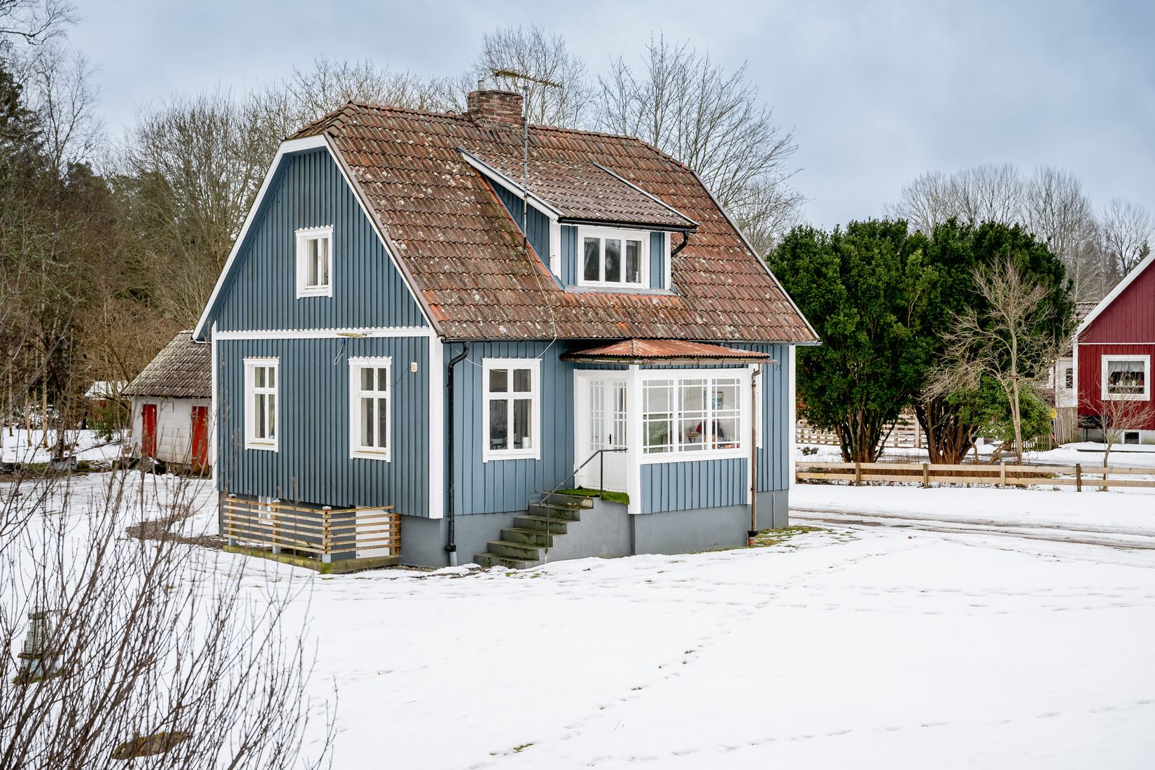 Entréplanet rymmer en hall med förvaring, det renoverade badrummet med våtrumsmatta som även fungerar som tvättstuga, ett sovrum med plats för dubbelsäng, ett enklare kök med lägre höjd på arbetsbänken som är i direkt anslutning till vardagsrummet där kaminen bidrar med både värme och känsla. På övre plan ligger en mindre hall och tre rum, varav ett är ett genomgångsrum, vilket ger flexibla användningsmöjligheter. Källaren är en råkällare som nås utifrån - nyligen har det dränerats runt den.