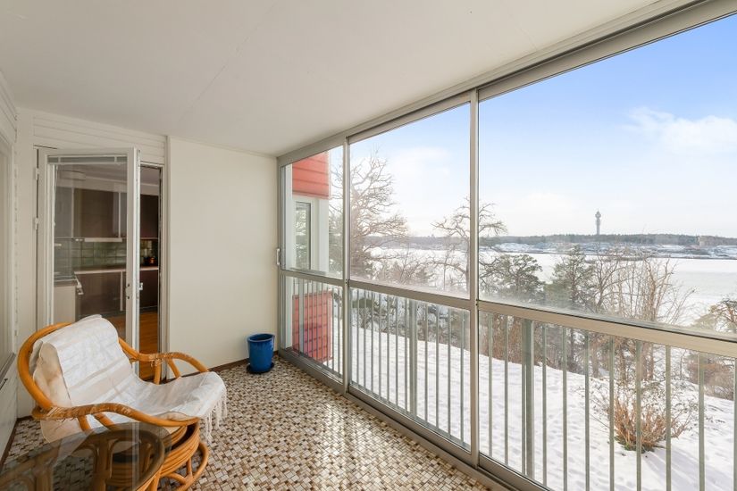 Välkomna till denna trivsamma och mysiga lägenhet på första parkett med underbar utsikt över grönska, vatten, Djurgården samt Stockholms siluett - perfekt för dig som vill njuta av lugnet! Välplanerad lägenhet som bjuder på en härlig kombination av funktion och läge. Utgång från både kök och vardagsrum till den generösa inglasade balkongen i syd/väsläge, tack vare inglasningen så förlängs säsongen på våren och hösten. Hemtrevligt kök med sittplats framför stort fönsterparti med vacker utsikt över grönska samt Lilla Värtan. Allrummet erbjuder gott om plats för både säng i sovalkov (det ryms en 140cm säng) och soffmöbler vilket gör planlösningen flexibel och lätt att möblera och skapa sitt egna mysiga boende.