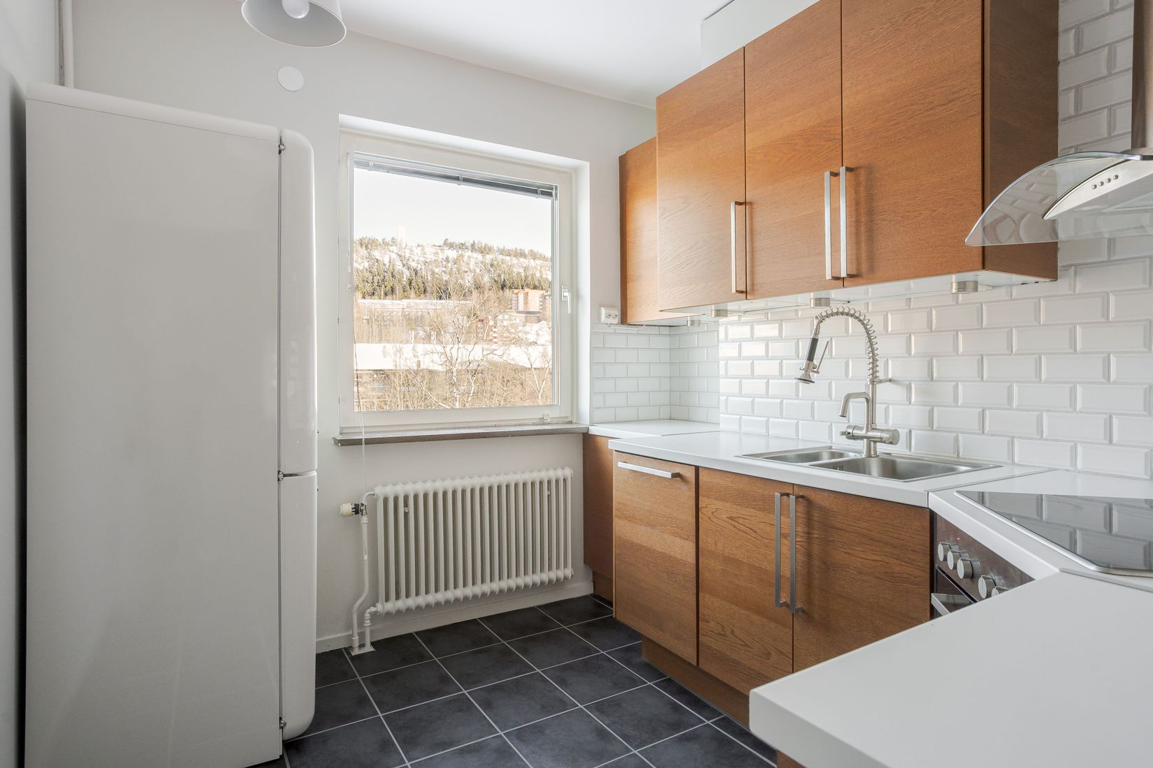 I lägenheten möts du av en hall med marmorgolv som sedan övergår till den ursprungliga fiskbensparketten, en skjutdörrsgarderob med bra förvaring, ett trevligt kök med utsikt över Selångersån,