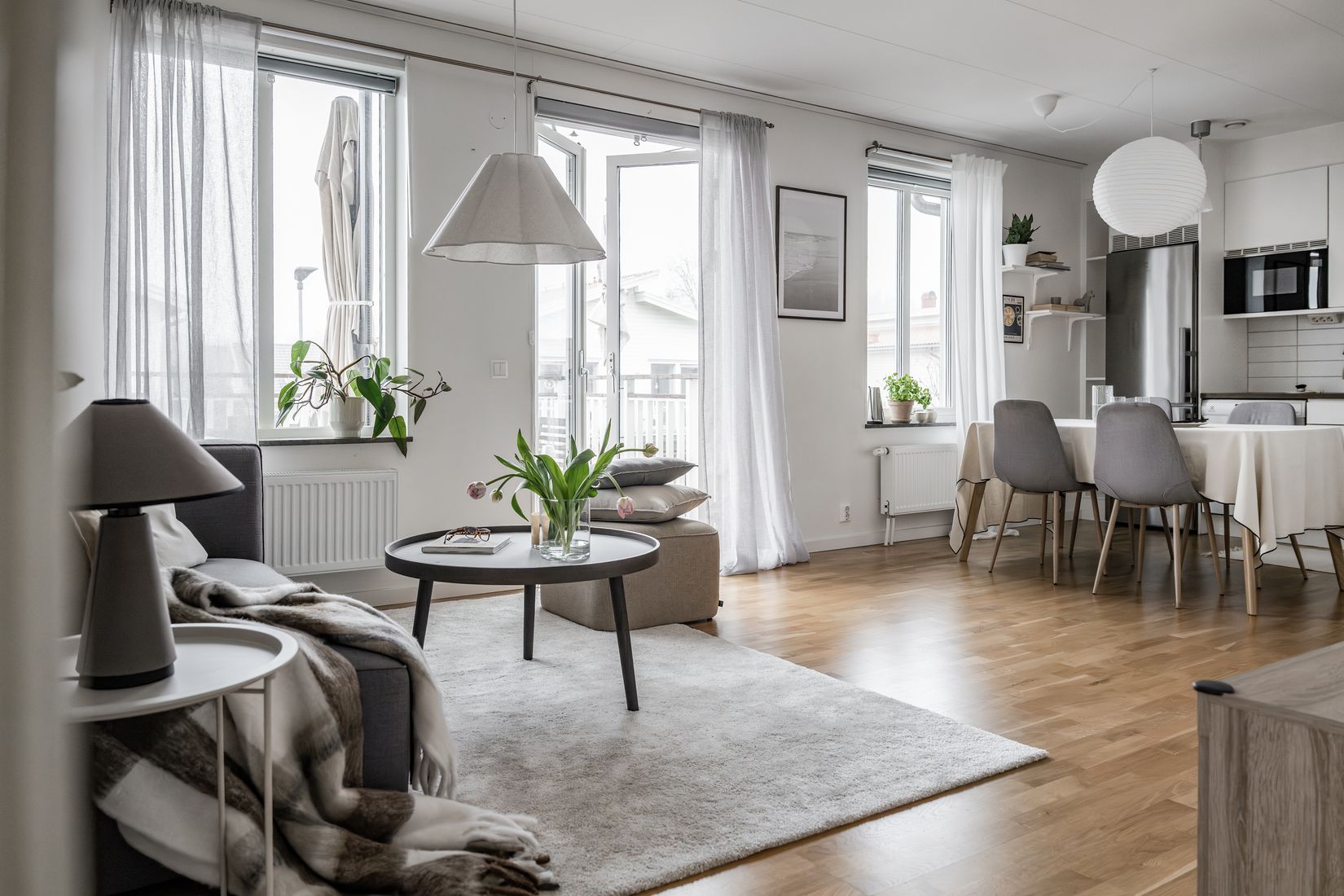 Bostaden erbjuder en spatiös och luftig känsla med genomgående hög standard och komfort. Här finns två rymliga sovrum med plats för större säng och övrigt möblemang, ett tidlöst kvalitetskök, ett ljust och lättmöblerat vardagsrum samt ett stilrent badrum utrustat med både tvättmaskin och torktumlare. Den väl tilltagna balkongen rymmer såväl matgrupp som grill och loungemöbler – en fantastisk plats att njuta av soliga och varma sommardagar.