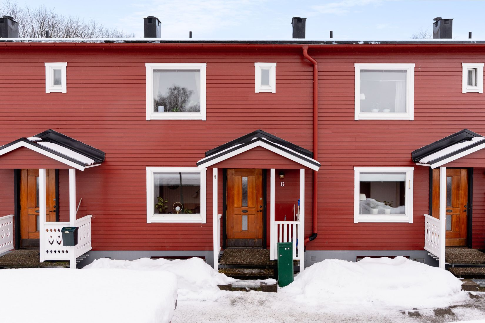 Trevlig insynsskyddad baksida med eftermiddag/kvällssol. Garage i länga ingår i avgiften.