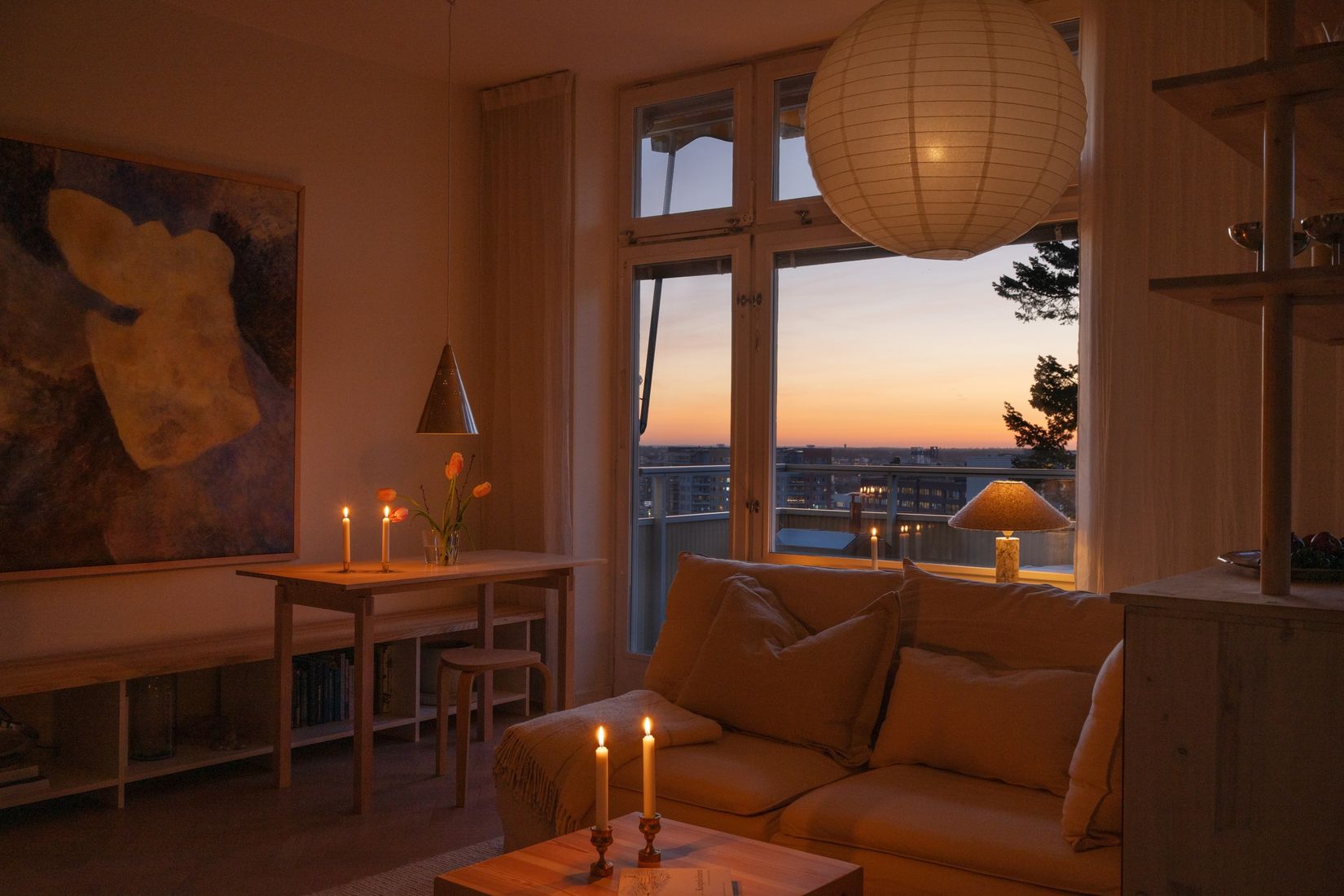 Lägenheten präglas av stora fönster, generös takhöjd och öppna ytor som tillsammans skapar en härlig rymd och ett ljusflöde utöver det vanliga. Redan i hallen möts du av ett fantastiskt ljusinsläpp och ett vackert stengolv som sätter tonen för bostaden. Här bor du i en lugn och ostörd miljö på en stillsam återvändsgata, samtidigt som du kan njuta av den fantastiska utsikten från både fönster och balkong.