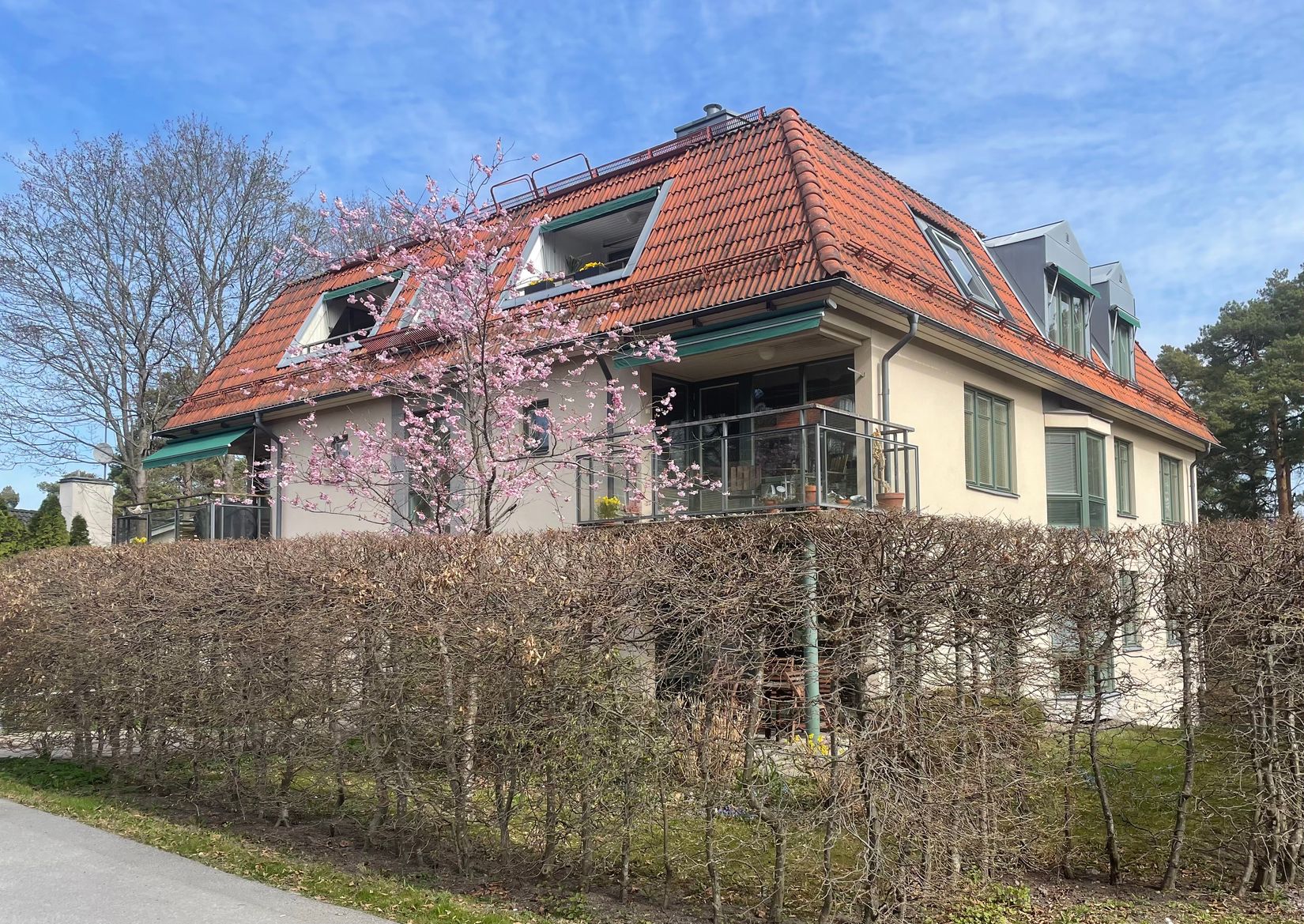 Denna förening består av utav två byggnader och totalt 12 st lägenheter uppförda 1998 av JM. Husen upplevs gedigna med en fin arkitektur som återspeglas i ljust putsade fasader mot vackra stora spröjsade fönster, burspråk och djupa glasade balkonger som uteplatser. Föreningen har en fin trädgård med gemensam uteplats, flaggstång och körsbärsträd samt omgiven av en vacker häck. Till varje lägenhet hör egen plats med laddstolpe i varmgarage med direkt access till hiss som tar en upp till bostaden.