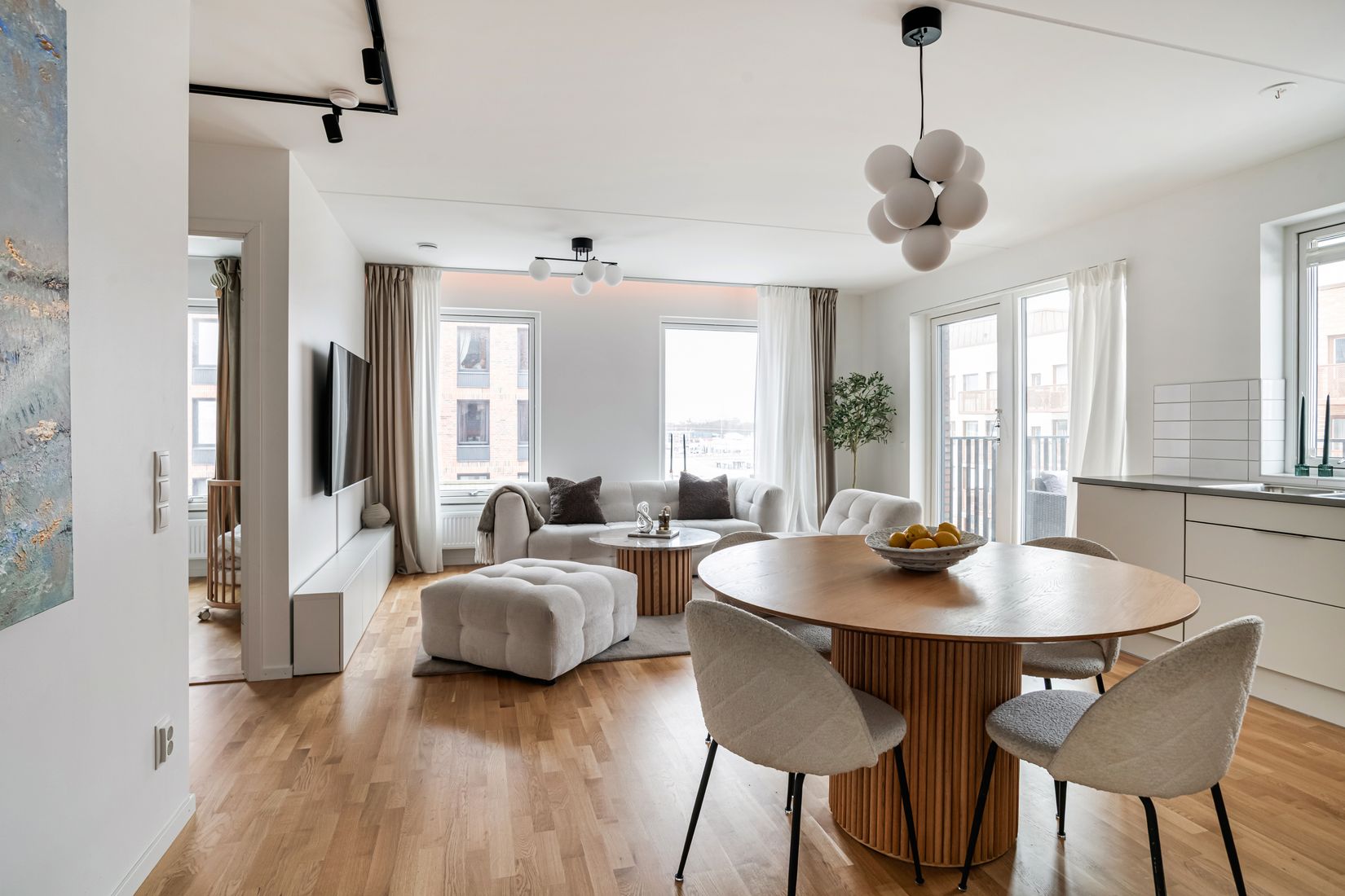 Välkommen till denna stilfulla, nyproducerade fyrarummare på attraktivt gavelläge, en bostad där ljuset flödar in från flera väderstreck och där balkongen bjuder in till både morgonkaffe och ljumma sommarkvällar.