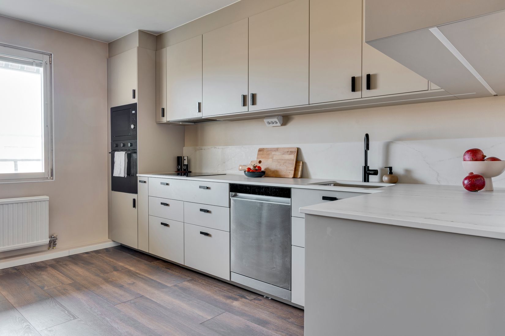 Redan i hallen möts du av en välkomnande känsla där bostadens nya golv skapar ett enhetligt och stilrent uttryck genom hela hemmet. Härifrån öppnar bostaden upp sig mot de sociala ytorna där det renoverade köket blir hemmets naturliga samlingspunkt. Köket är modernt utformat med goda arbetsytor, smart förvaring och en rymlig matplats där familj och vänner kan samlas kring middagar och långa samtal.