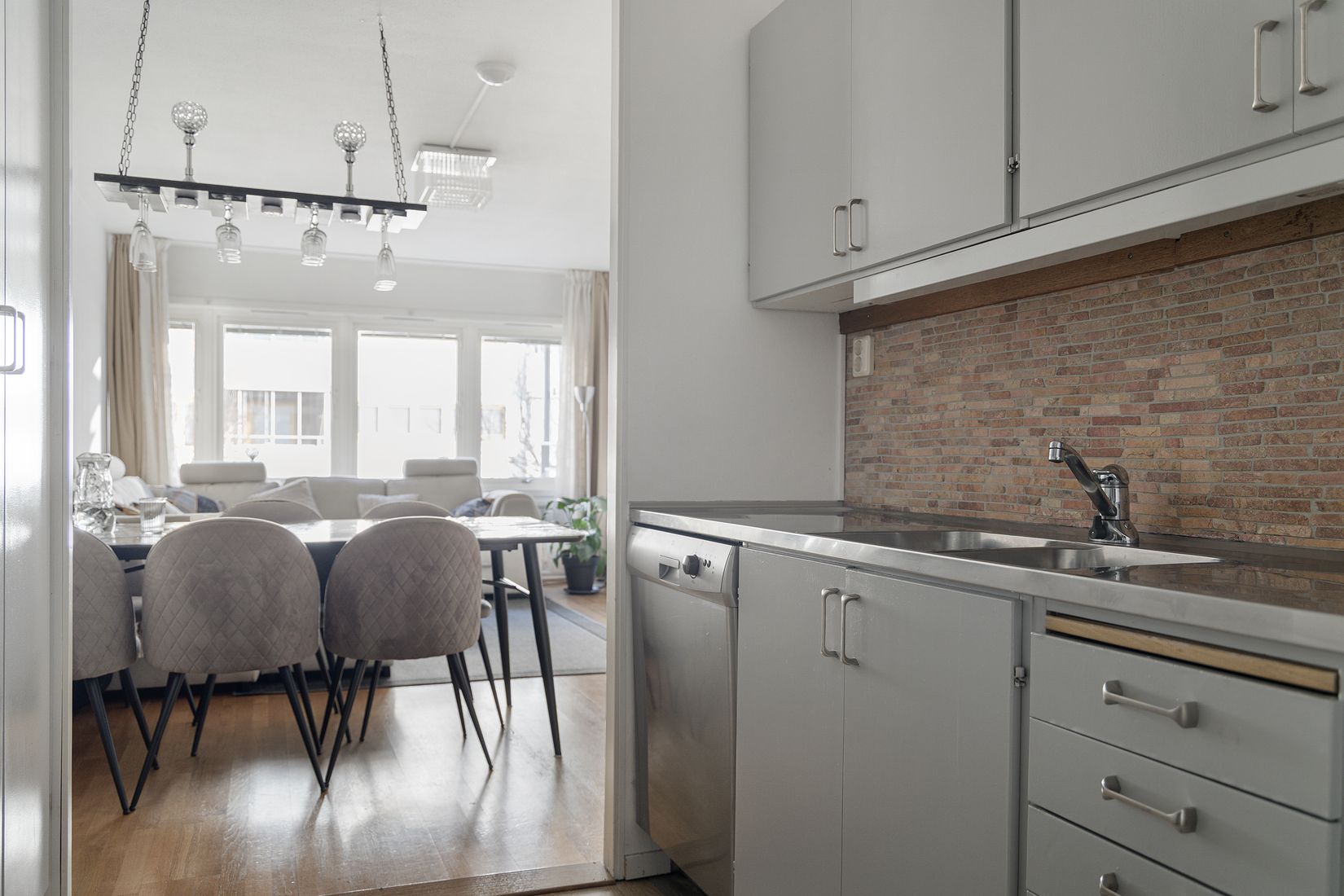 Rymlig hall med kapprum som även kan nyttjas till en arbetshörna. Generöst och ljust vardagsrum, perfekt för social gemenskap. Härifrån nås det trevliga arbetsköket. Två fina sovrum i olika delar av bostaden. Det större sovrummet leder vidare till en inglasad balkong som erbjuder möjlighet att förlänga sommarhalvåret. Helkaklat badrum med tvättmaskin.