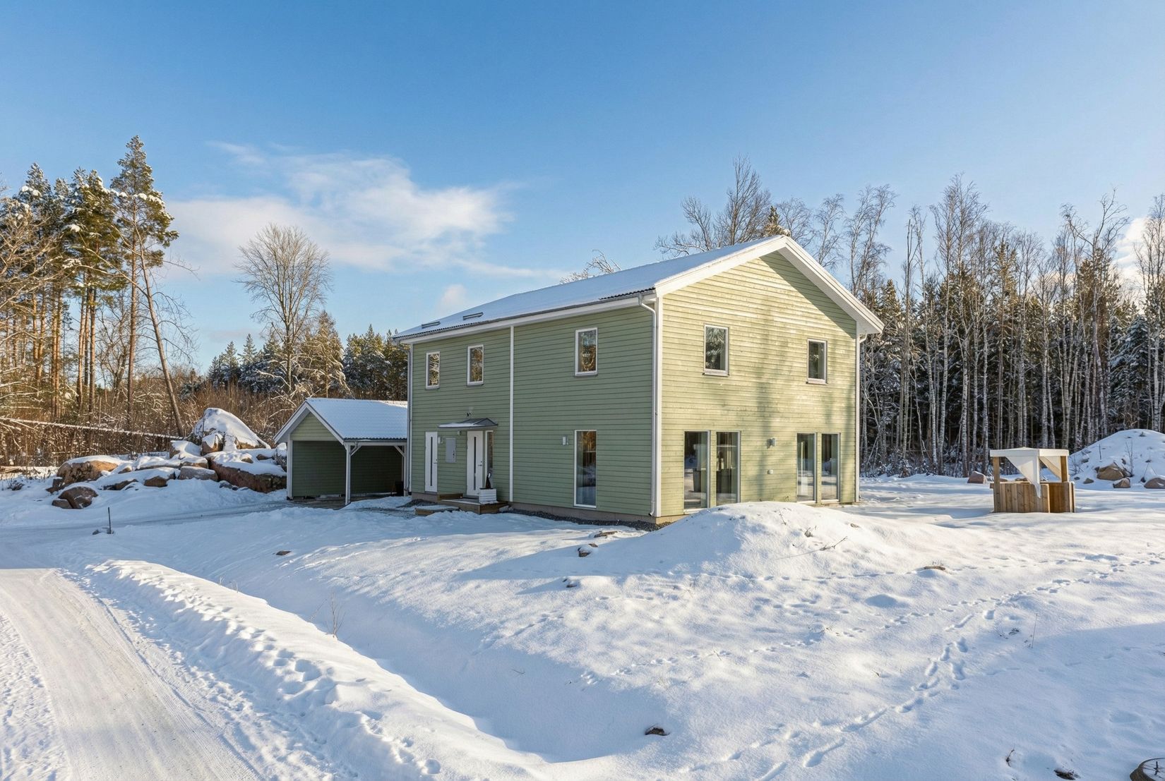 Uppvärmning via luft/vattenvärmepump. Vattenburen golvvärme entréplan samt vattenburna radiatorer övre plan. Dubbel carport med förråd i anslutning. Tomten är grovplanerad.