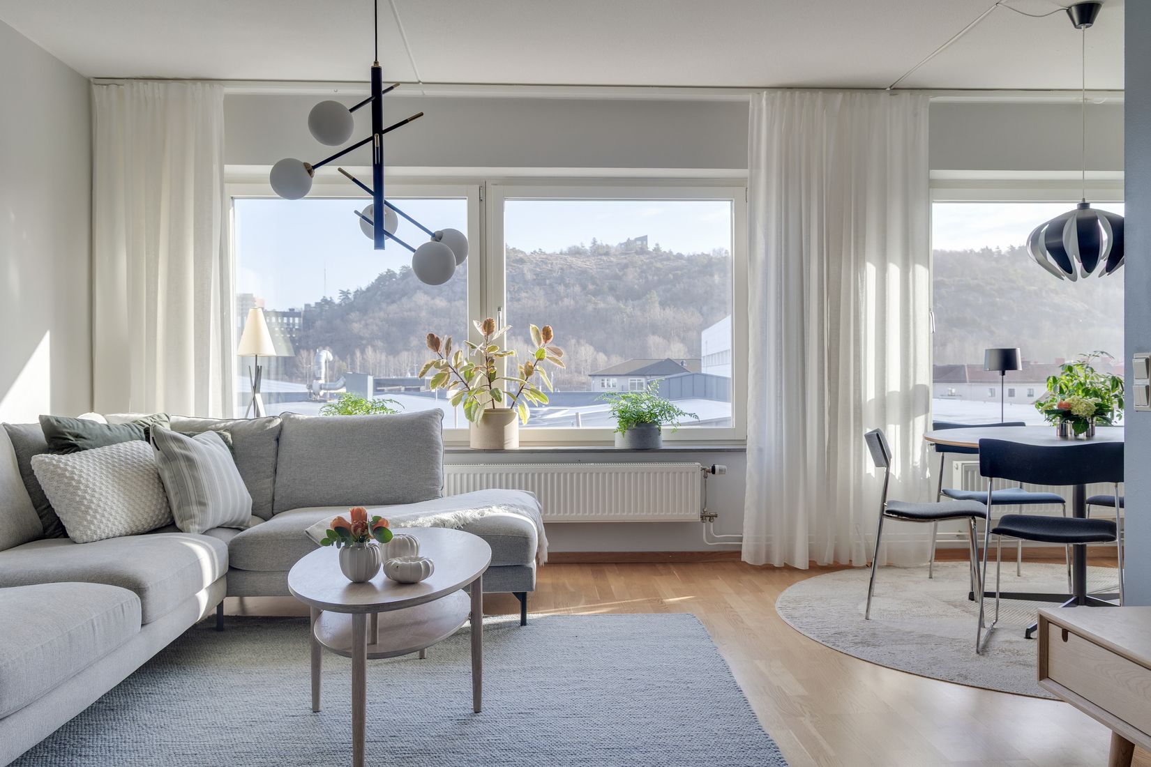 Naturen är ständigt närvarande med Safjällets naturreservat som granne. Samtidigt anar ni stadens puls, bara några minuter bort. Runt hörnet finns ett mysigt konditori som är välbesökt av de kaffe- och sötsugna. I övrigt är det nära till grundskola och mataffärer (Ica Maxi och Willys). Nordic Wellness och andra gym finns vid Almedal. Spårvagnslinje 4 och 12 tar er smidigt och snabbt in till Korsvägen och Avenyn. Fem minuter till Mölndal Innerstad. Från Mölndals station kan man ta Öresundståget mot Malmö/Köpenhamn eller pendeltåget till Kungsbacka. Buss 757 går smidigt mot Linnéplatsen för den som åker åt det hållet. Kort sagt mycket goda kommunikationer.