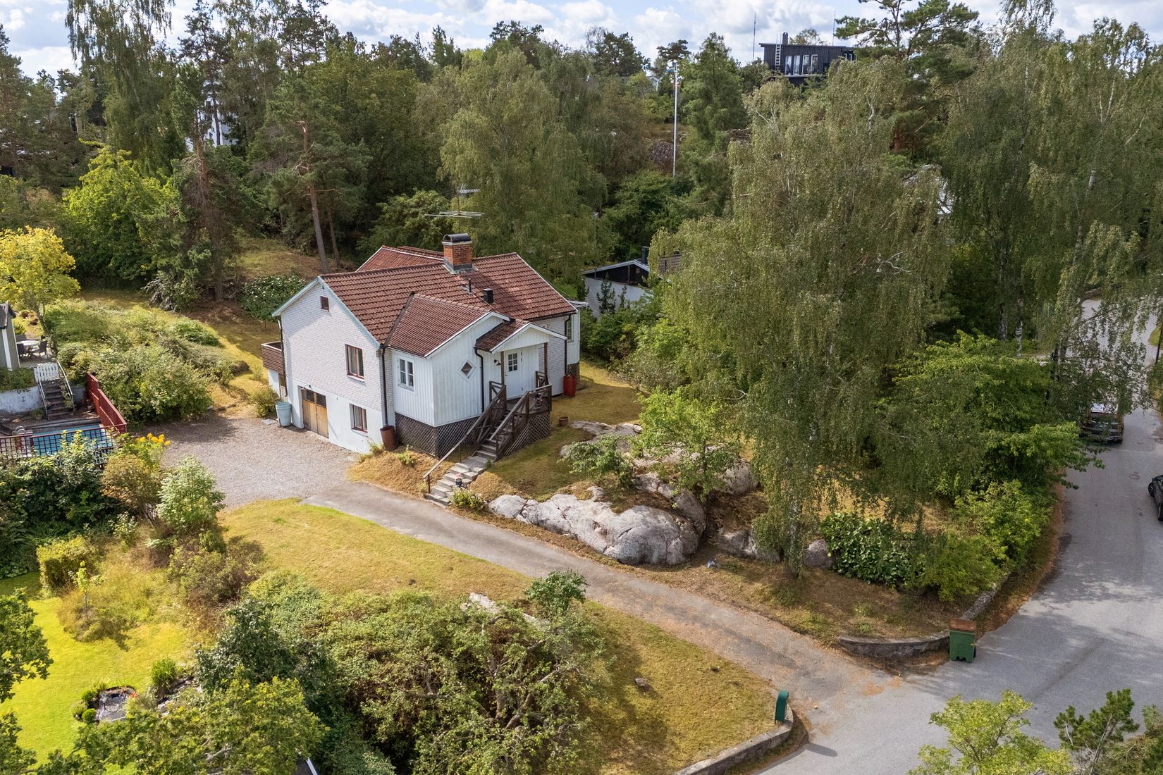 Tomten är generös och grönskande med fina möjligheter för odling, lek och avkoppling. För den som vill utveckla fastigheten finns finns även potential då tomten är möjlig att stycka, även om en framtida styckning förmodligen skulle innebära att huset måste flyttas elr rivas.