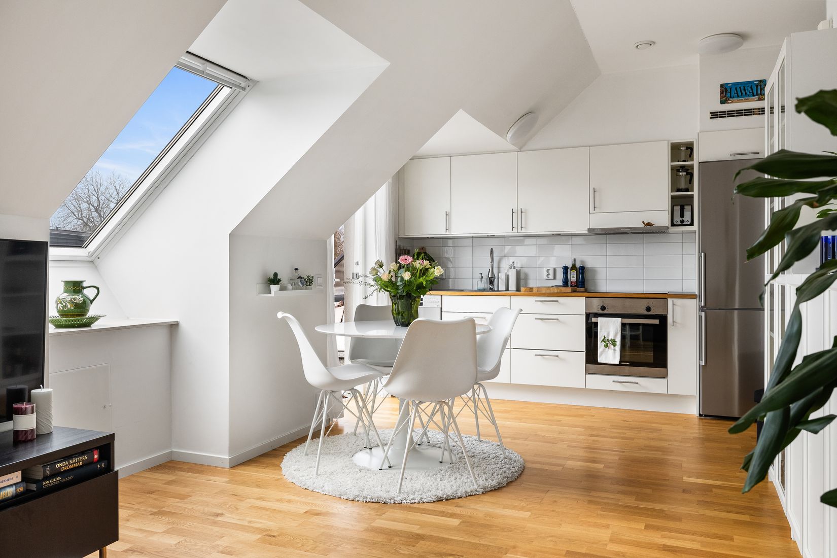Välkommen till en hemtrevlig och stilfull 1:a i populära Trädgårdsstaden i Ystad - ett boende som kombinerar charm, ljus och smart planering på bästa sätt! Högst upp i huset, med bekväm hiss hela vägen, väntar denna inbjudande vindsvåning med härlig rymd och ett fantastiskt ljusinsläpp. De snedställda taken och de två generösa takfönstren ger lägenheten en unik karaktär och låter dagsljuset flöda in över det vackra trägolvet. Här skapas en luftig och harmonisk atmosfär som gör det lätt att känna sig hemma från första stund. Allrummet är mysigt och lättmöblerat med plats för både soffa, matbord och förvaring. De stora takfönstren ger en härlig kontakt med himlen och förstärker känslan av rymd. Intill finns en smart planerad sovalkov med plats för en 160 cm säng - en avskild och ombonad sovdel som gör att bostaden upplevs större än sina kvadratmeter. Det moderna köket är stilrent med ljusa skåpsluckor, bra arbetsytor och full maskinell utrustning. Här finns gott om förvaring och plats för matgrupp vid fönster, perfekt för såväl vardagsmiddagar som trevliga kvällar med vänner. Badrummet är fräscht och modernt, praktiskt kombinerat med tvättrum - en lyx i en etta. Här finns tvättmaskin kombinerat med torktumlare, bra förvaringsmöjligheter och genomtänkta materialval som skapar en enhetlig och stilren känsla. Från bostaden når du även balkongen i soligt söderläge - en underbar plats för morgonkaffet, avkoppling i solen eller odling i kruka under sommarhalvåret. Här bor du i ett lugnt och omtyckt område med närhet till grönområden, service och goda kommunikationer, samtidigt som Ystads charmiga stadskärna och havet finns inom bekvämt avstånd.