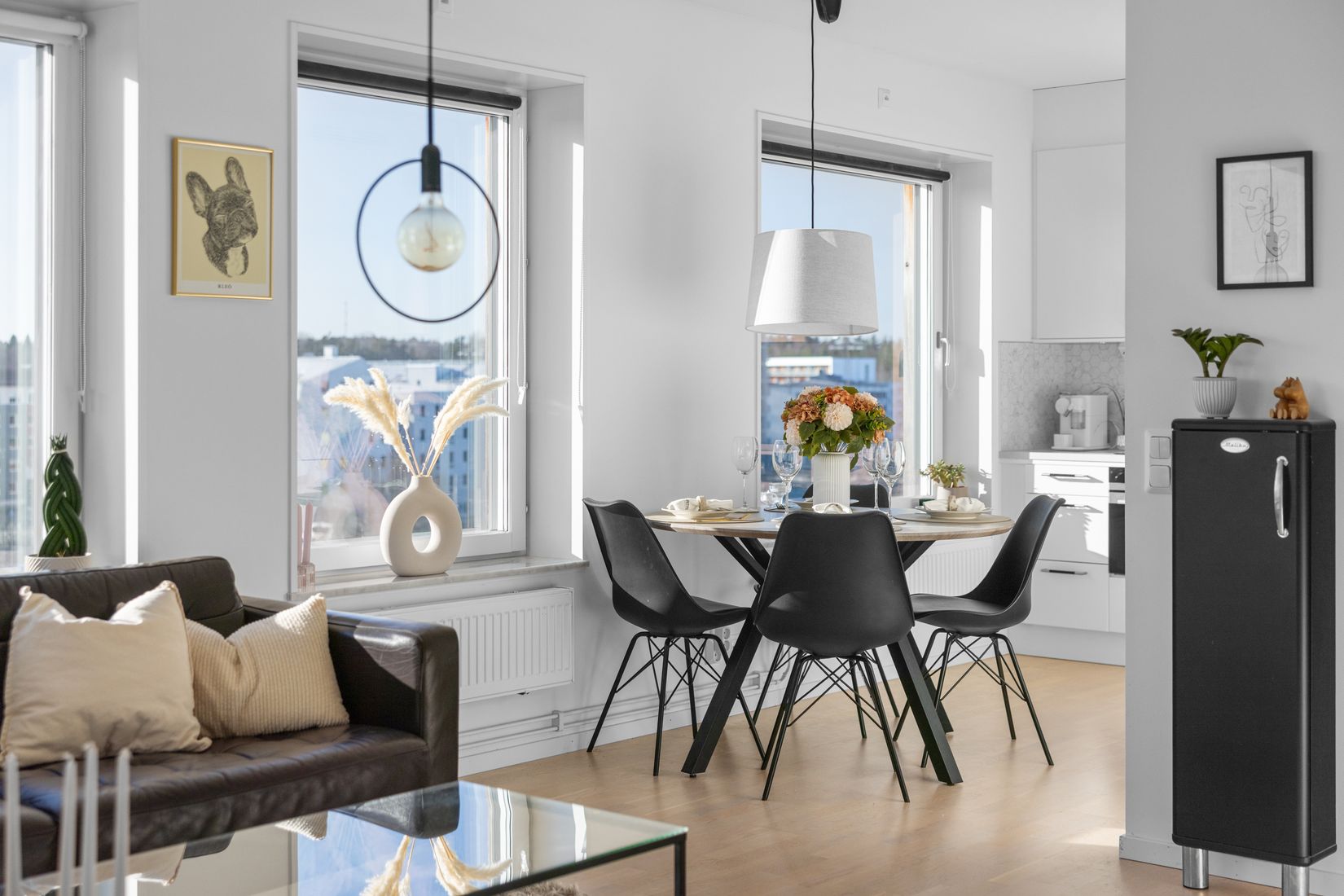 Väl i bostaden möts vi av en trevlig hall med hatthylla samt garderober för förvaring. Vidare nås det öppna rummet som erbjuder plats för soffgrupp, säng/sängskåp och andra enklare möblemang att inreda med efter eget tycke och smak. Stora fönster ger magiskt ljusinsläpp till lägenheten under hela dagen. Från vardagsrummet finns även utgången till den härliga inglasade balkongen. Här kan ni njuta av av solens strålar från morgon till lunch till kväll i en mysig loungegrupp eller matgrupp. Tack vare inglasningen blir balkongen en naturlig förlängning av bostaden och kan nyttjas stora delar av året.